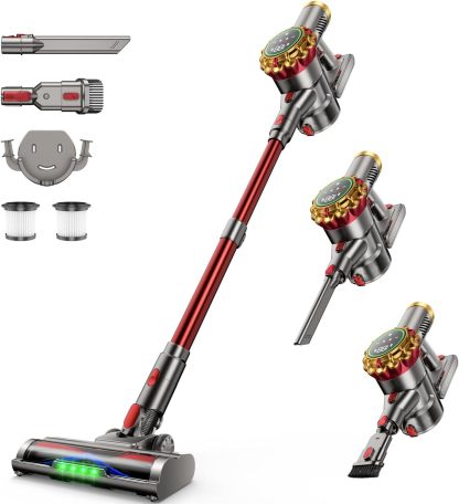 - 𝐌𝐮𝐥𝐭𝐢-𝐒𝐮𝐫𝐟𝐚𝐜𝐞 𝐀𝐝𝐚𝐩𝐭𝐚𝐛𝐢𝐥𝐢𝐭𝐲 𝐟𝐨𝐫 𝐌𝐨𝐝𝐞𝐫𝐧 𝐇𝐨𝐦𝐞𝐬: Experience "Flagship" intelligence with a vibrant LED touch screen that monitors battery life and maintenance in real-time. This stick vacuum cordless rechargeable quickly converts into a handheld vacuum cordless for stairs, cars, and furniture. From floor vacuum to handheld vacuum, its lightweight 5-7 lb design reduces fatigue, making it the best cordless vacuum cleaner 2026 for users of all ages.