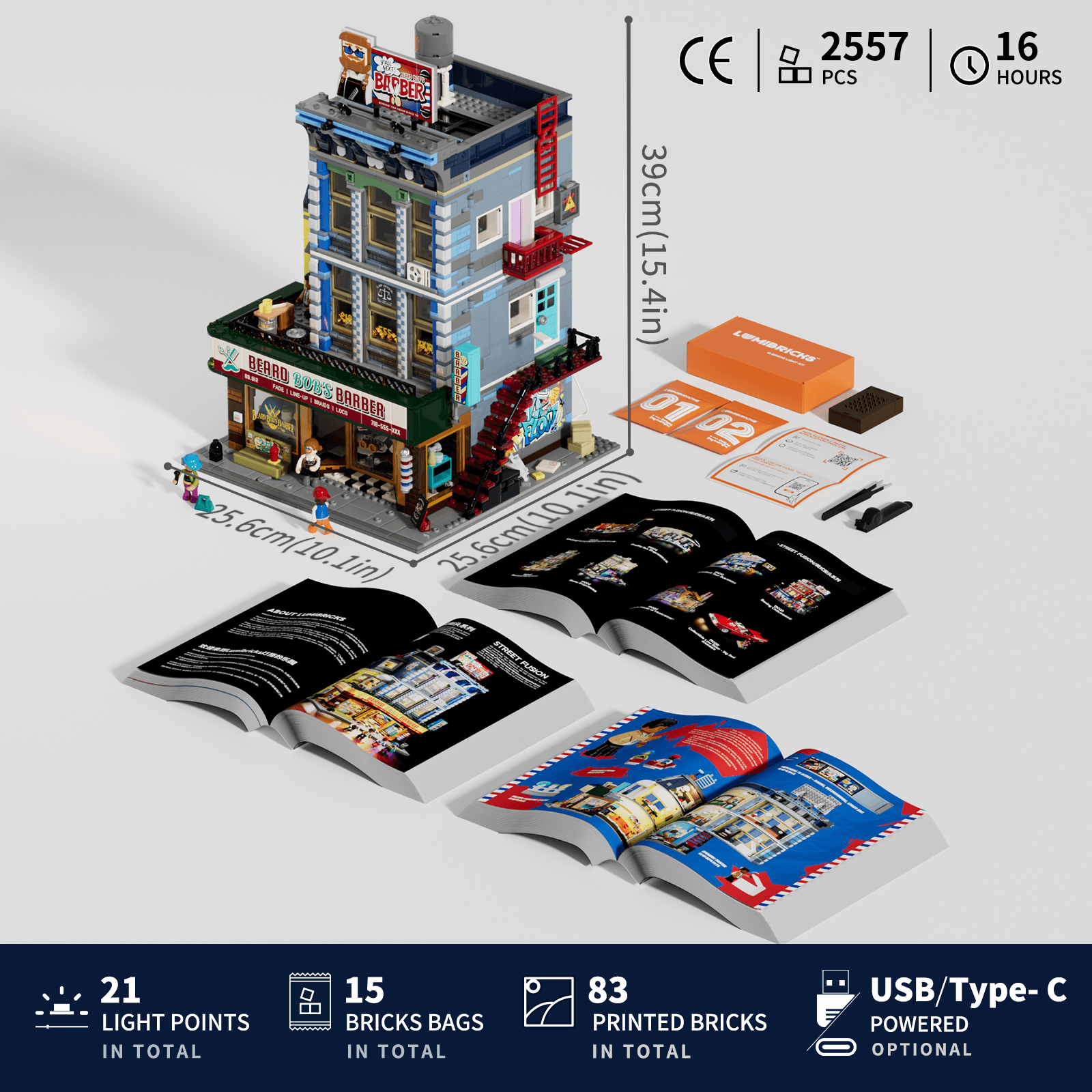 【Package List】The product includes building blocks 2557PCS, 15 bricks bags, 21 LED lights, 83 printed bricks and 3 clear assembly guides.