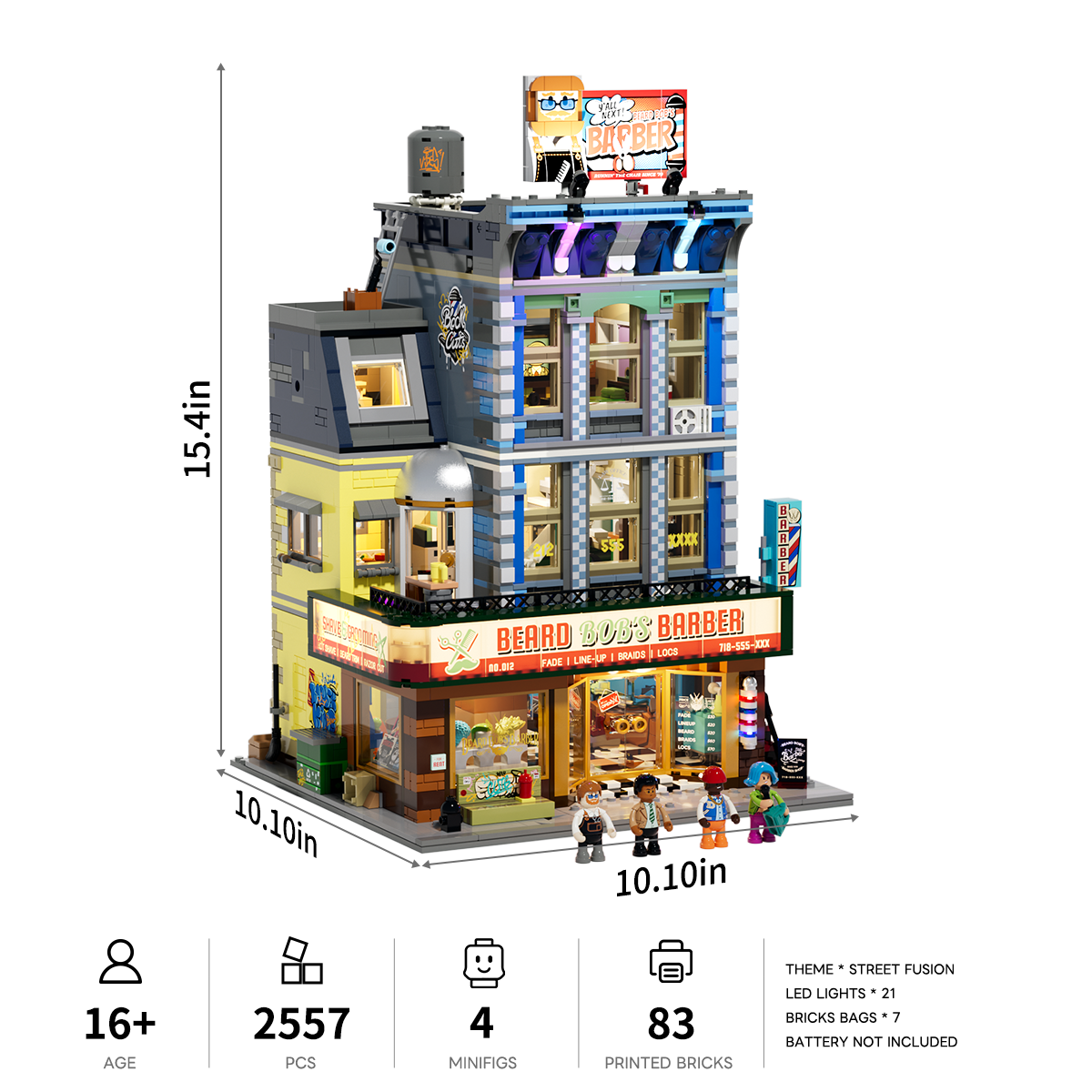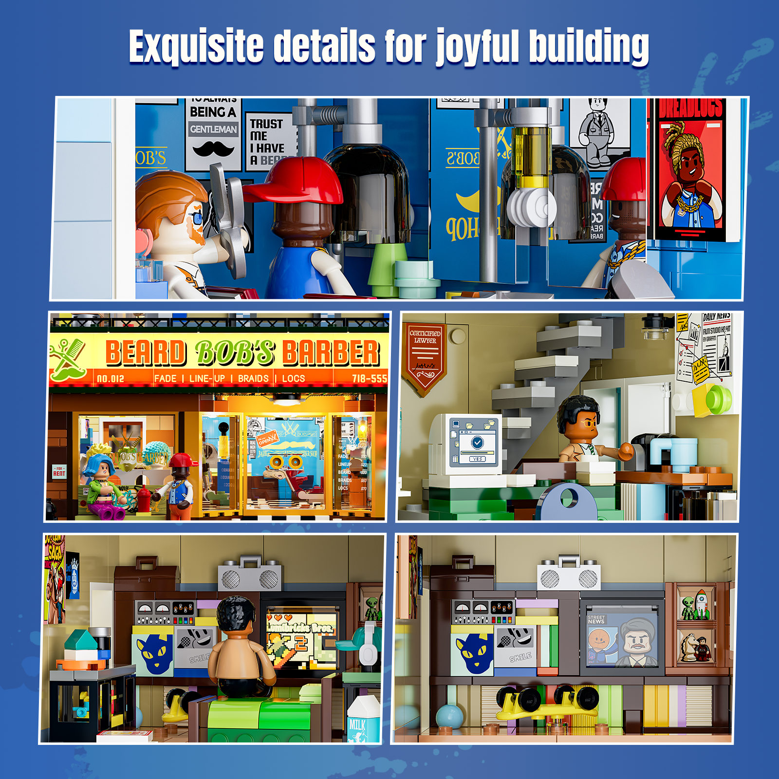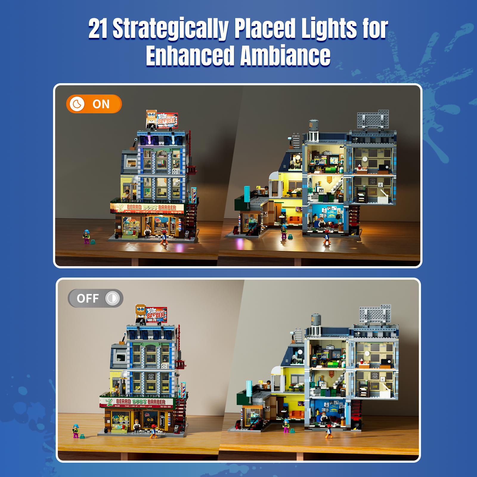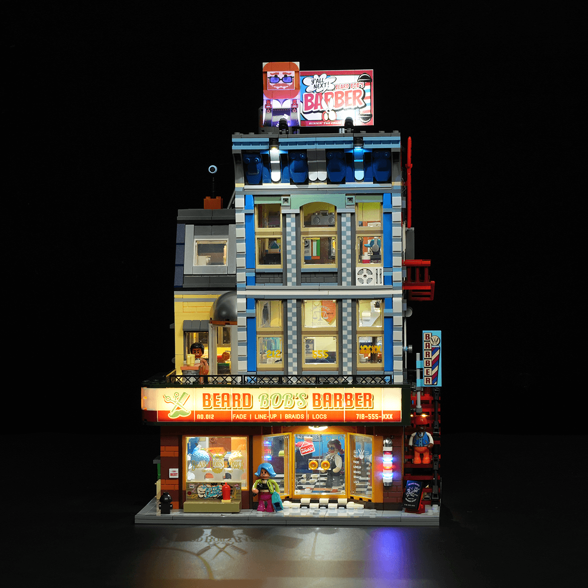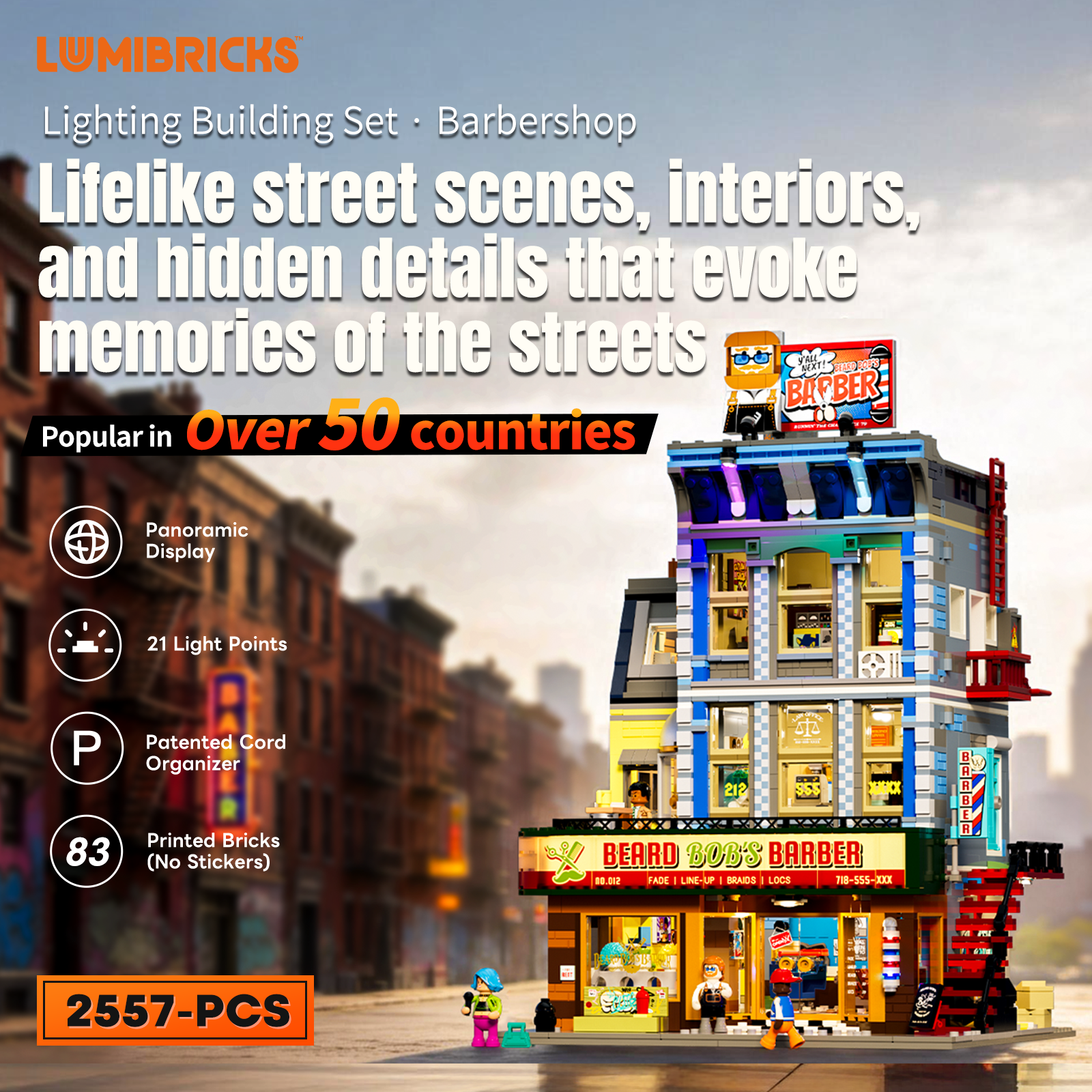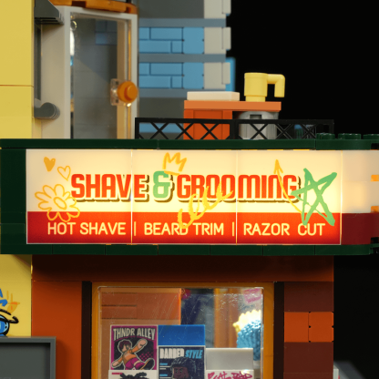 【Light Up the Brooklyn Night】21 lighting points bring the street to life, from glowing shop signs and the classic barber pole to gradient wall lights, recreating the vibrant atmosphere of a Brooklyn night.