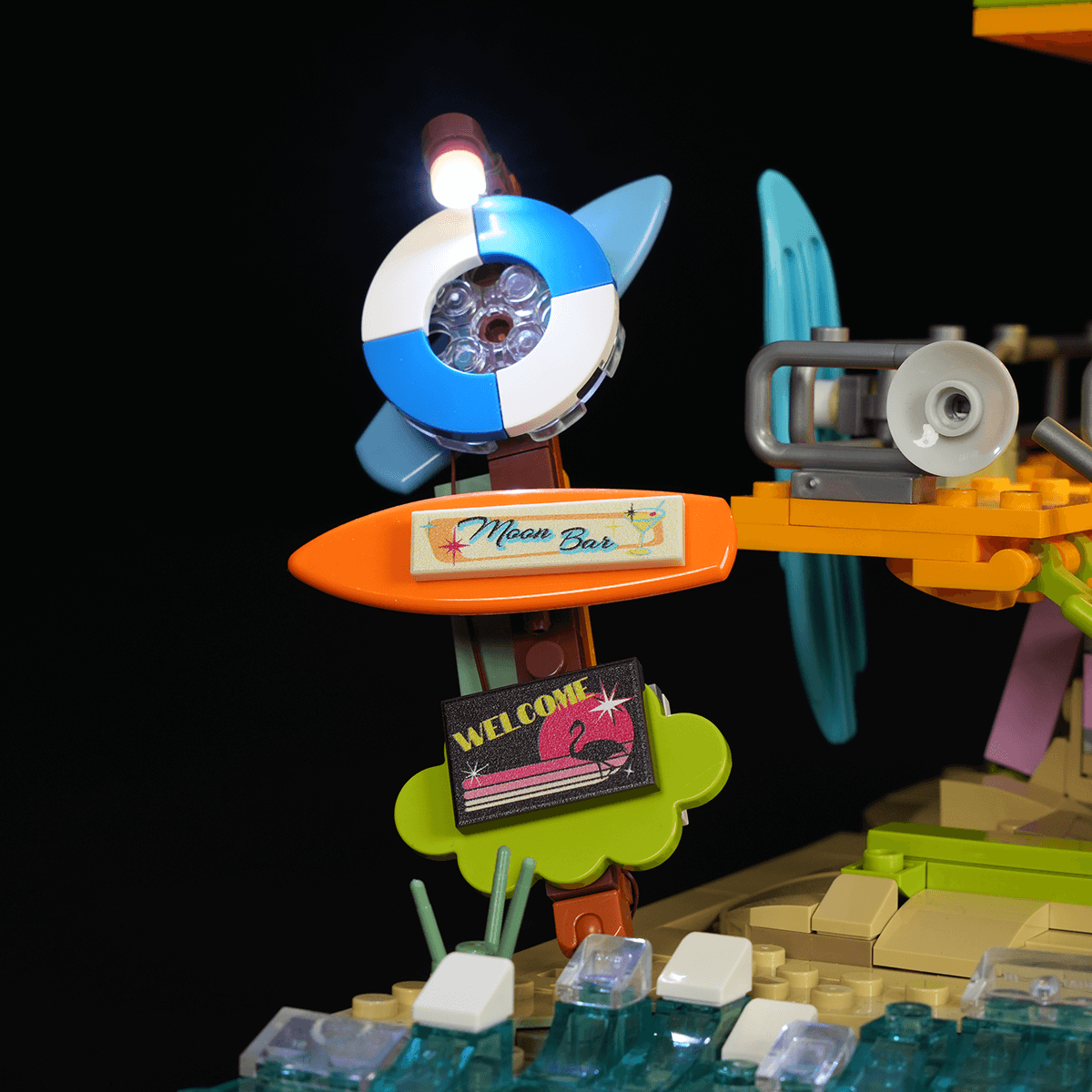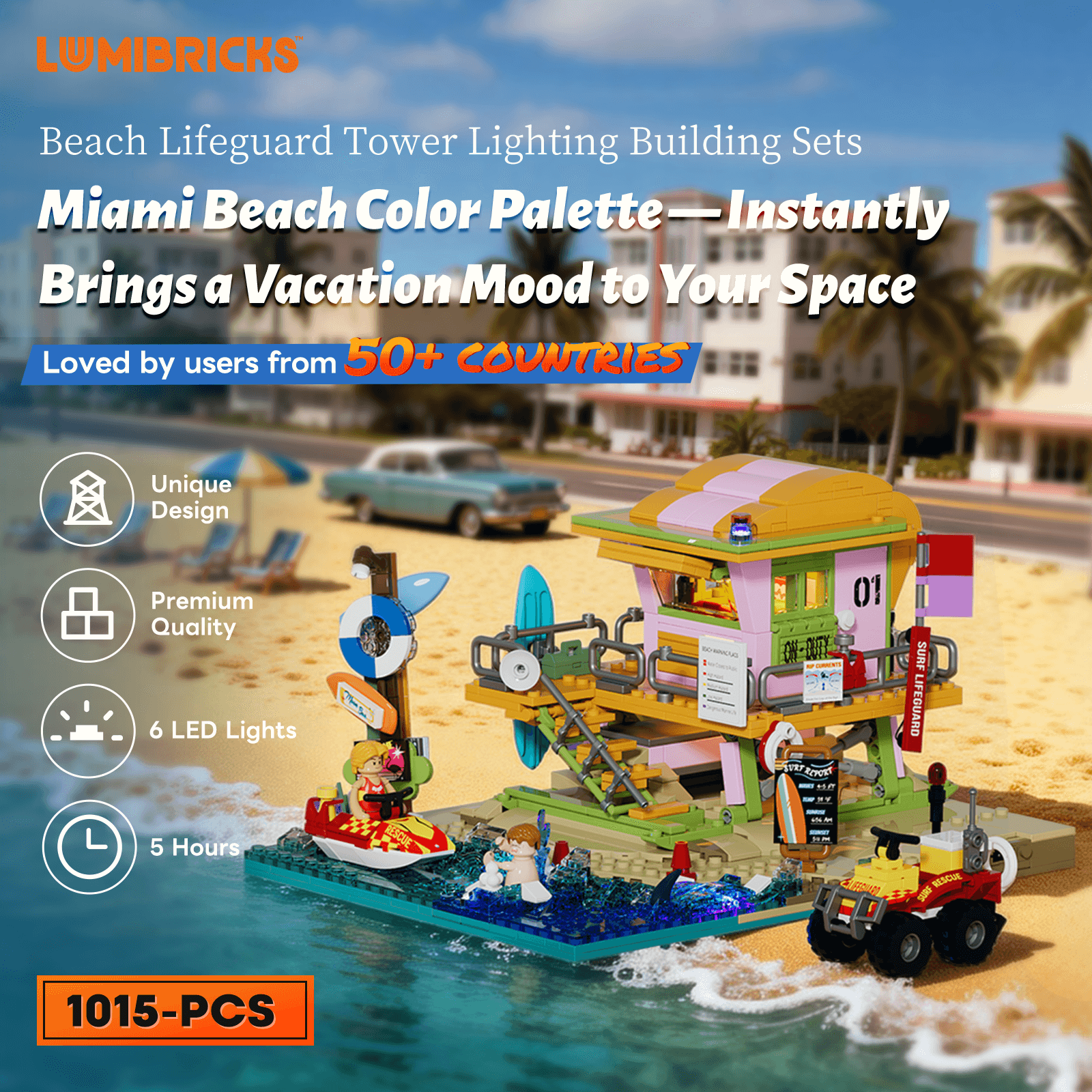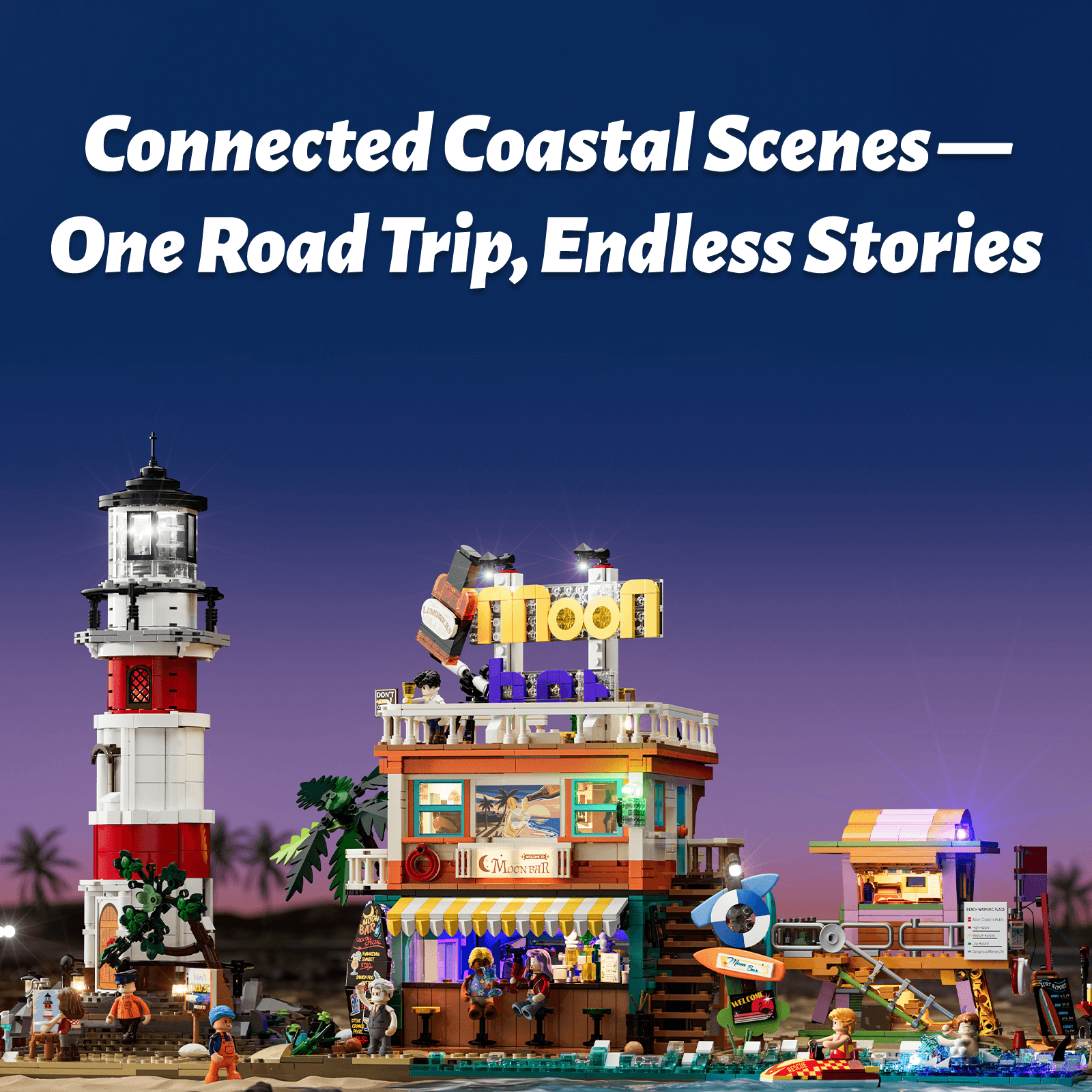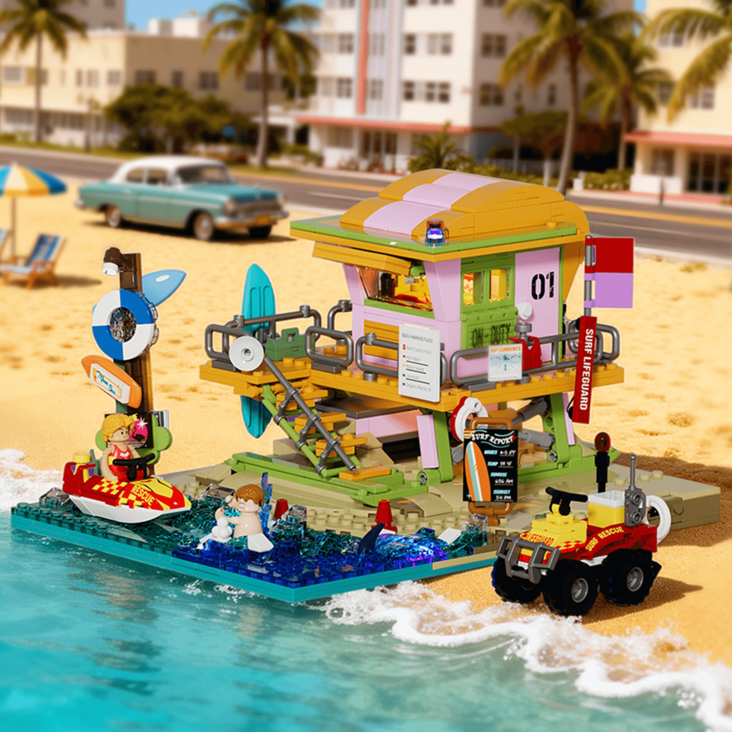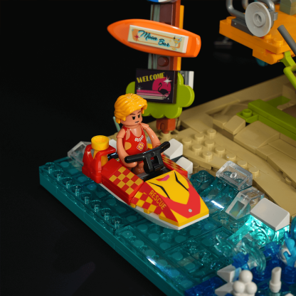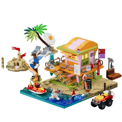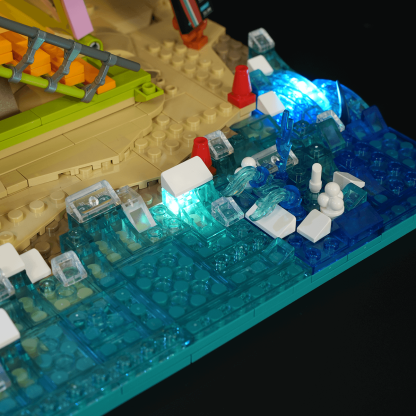 【All-In-One Coastal Accessory Collection】Packed with a full range of beach-life elements—from ocean rescue gear like jet skis and ATVs to relaxing shore-side details such as loungers, sandcastles, and outdoor showers—this set delivers a complete seaside world in one build.