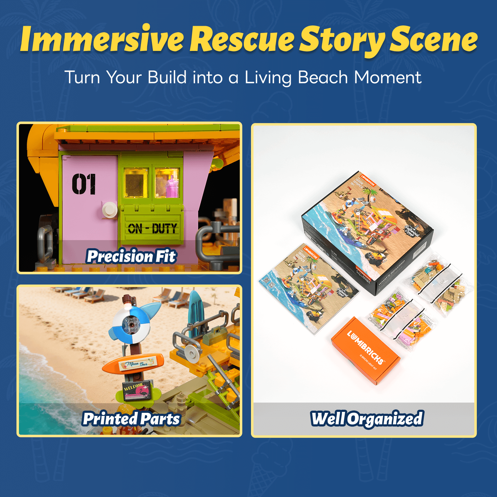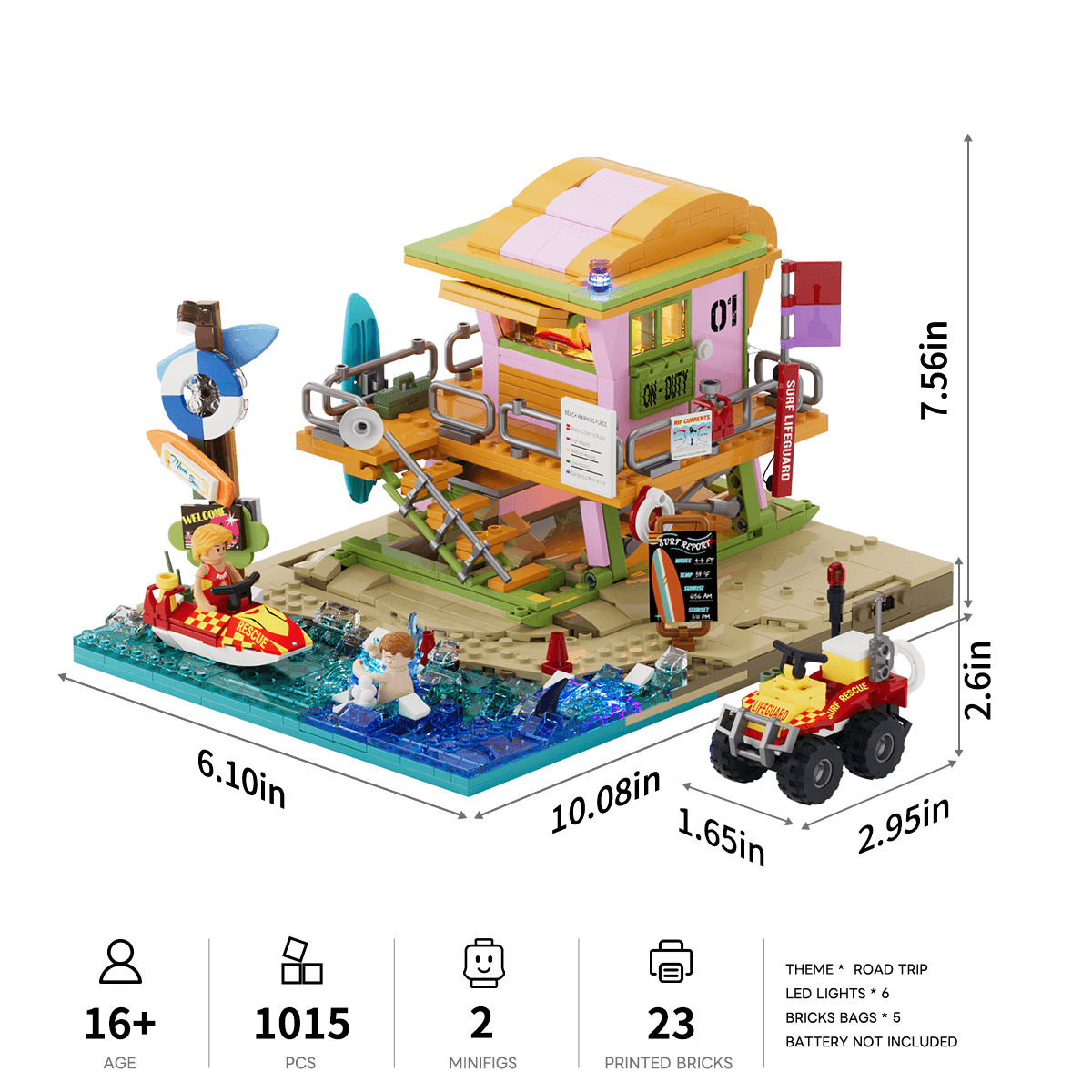 【Professional-Grade Printed Signage Details】High-precision printed accessories include beach warning flags, rip current safety guides, and surf report boards, adding authentic lifeguard realism and storytelling depth.