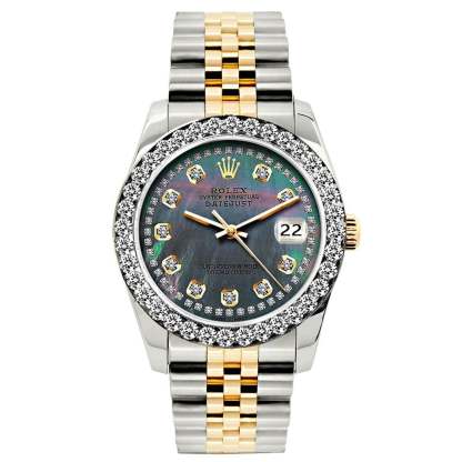 Dial : Custom Aftermarket Black Mother of Pearl Diamond Dial