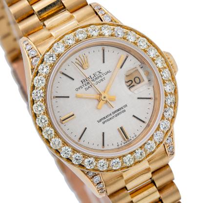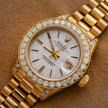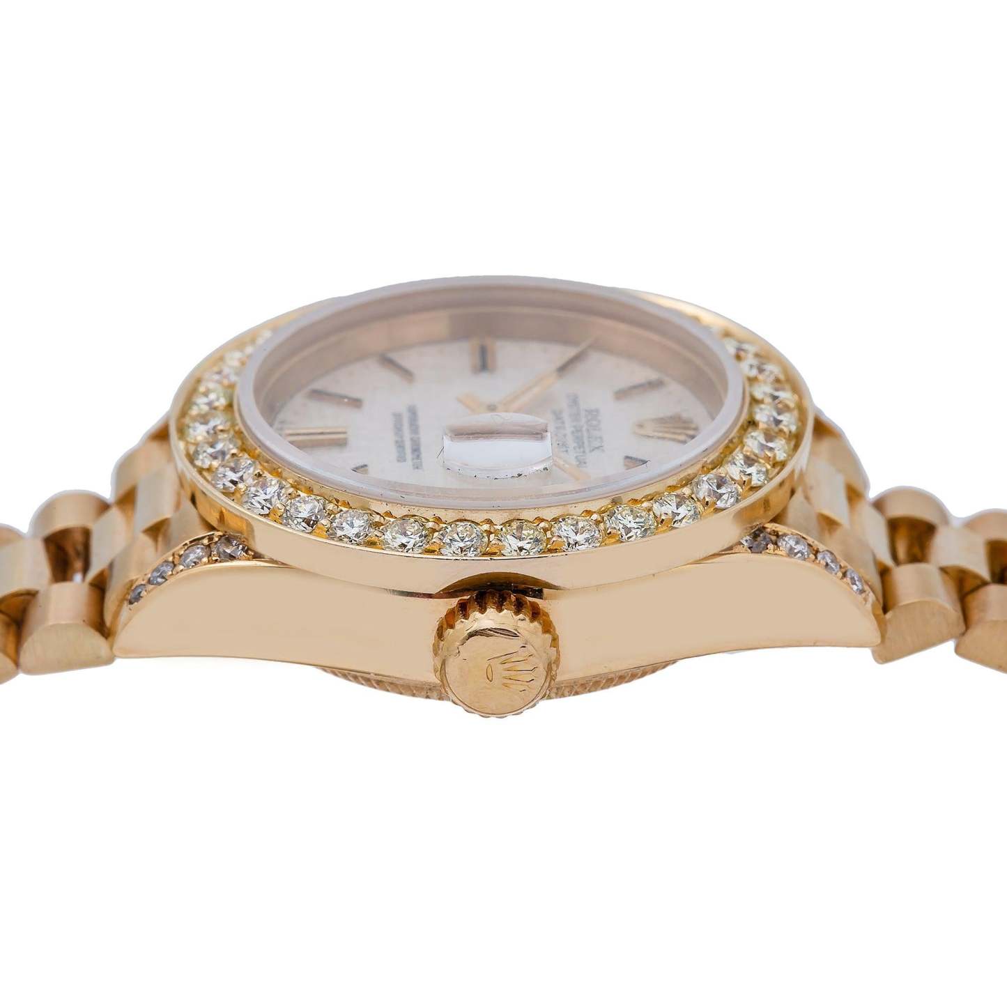 Bezel : Custom Aftermarket Yellow Gold Diamond Bezel with Diamond Lugs