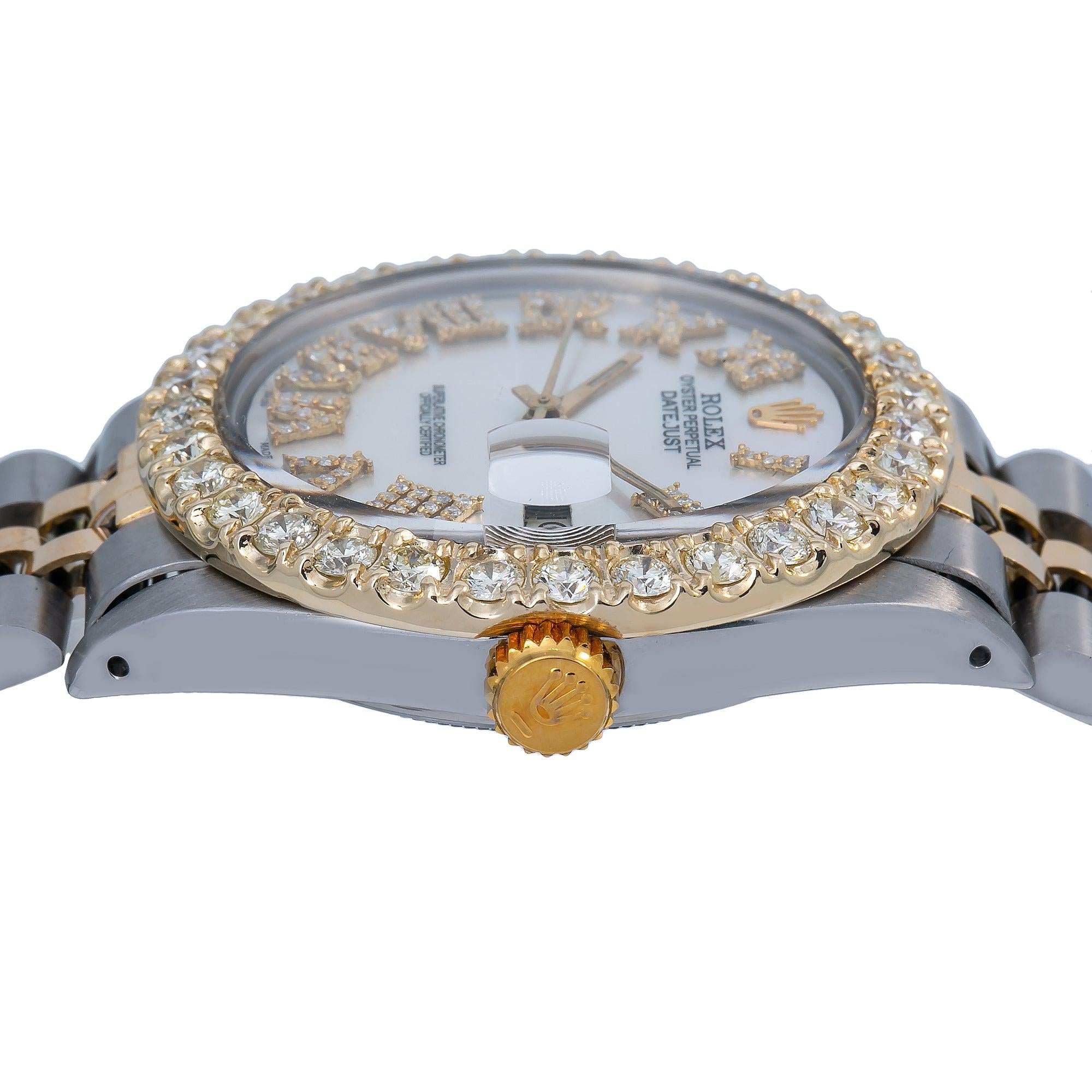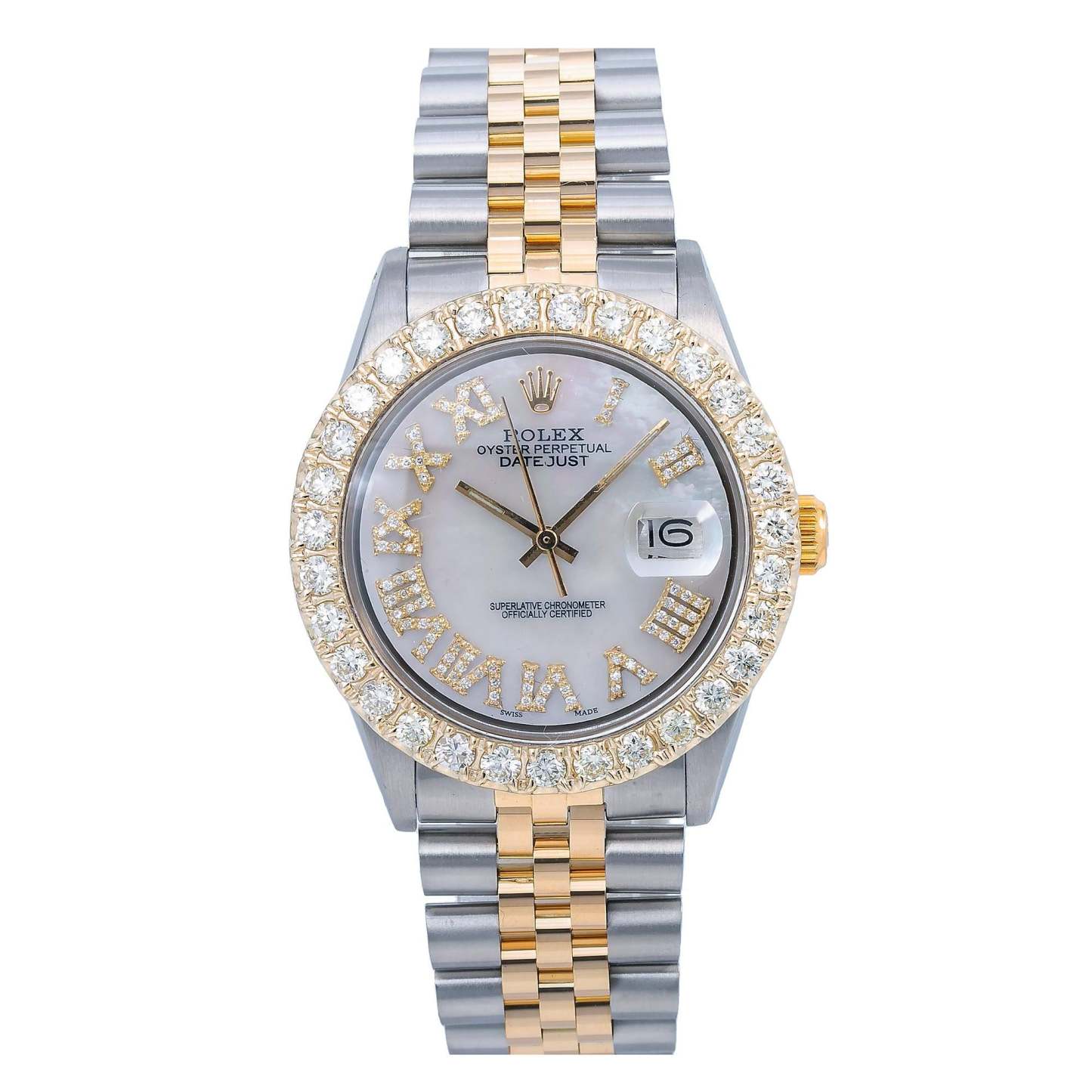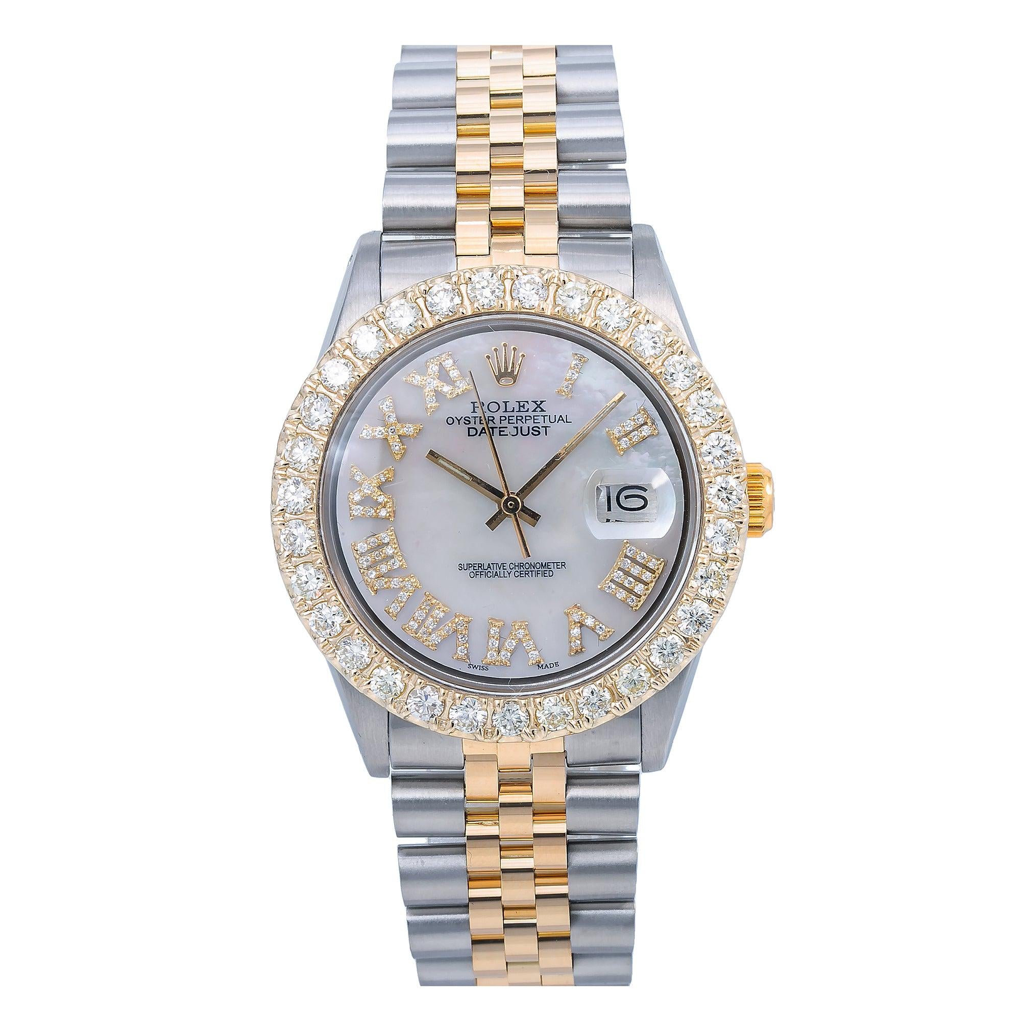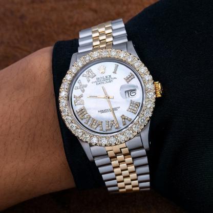 Dial : Custom Aftermarket White Mother of Pearl Roman Diamond Dial