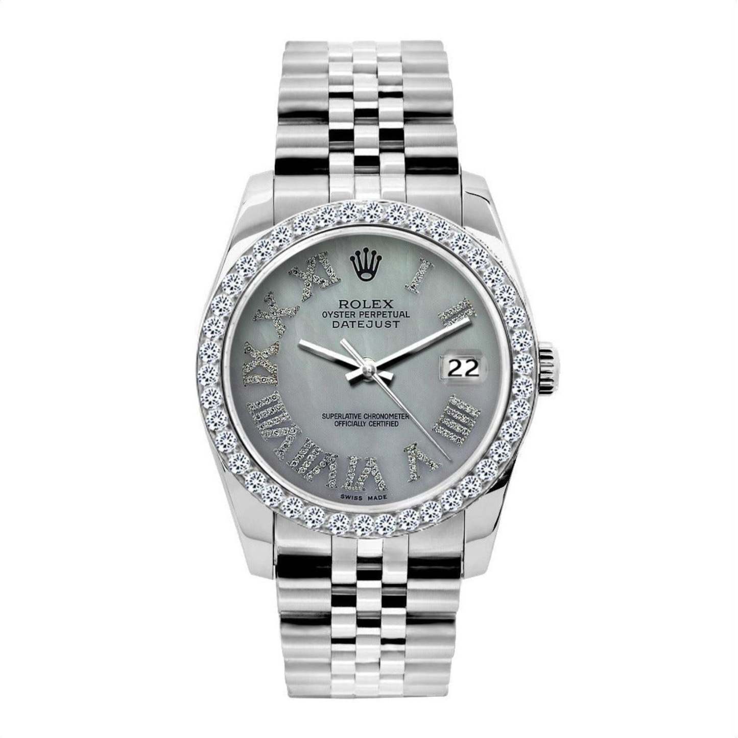 Datejust 36MM 16200 White Mother of Pearl Roman Diamond Dial Diamond Bezel Stainless Steel Jubilee Bracelet 1.2ct