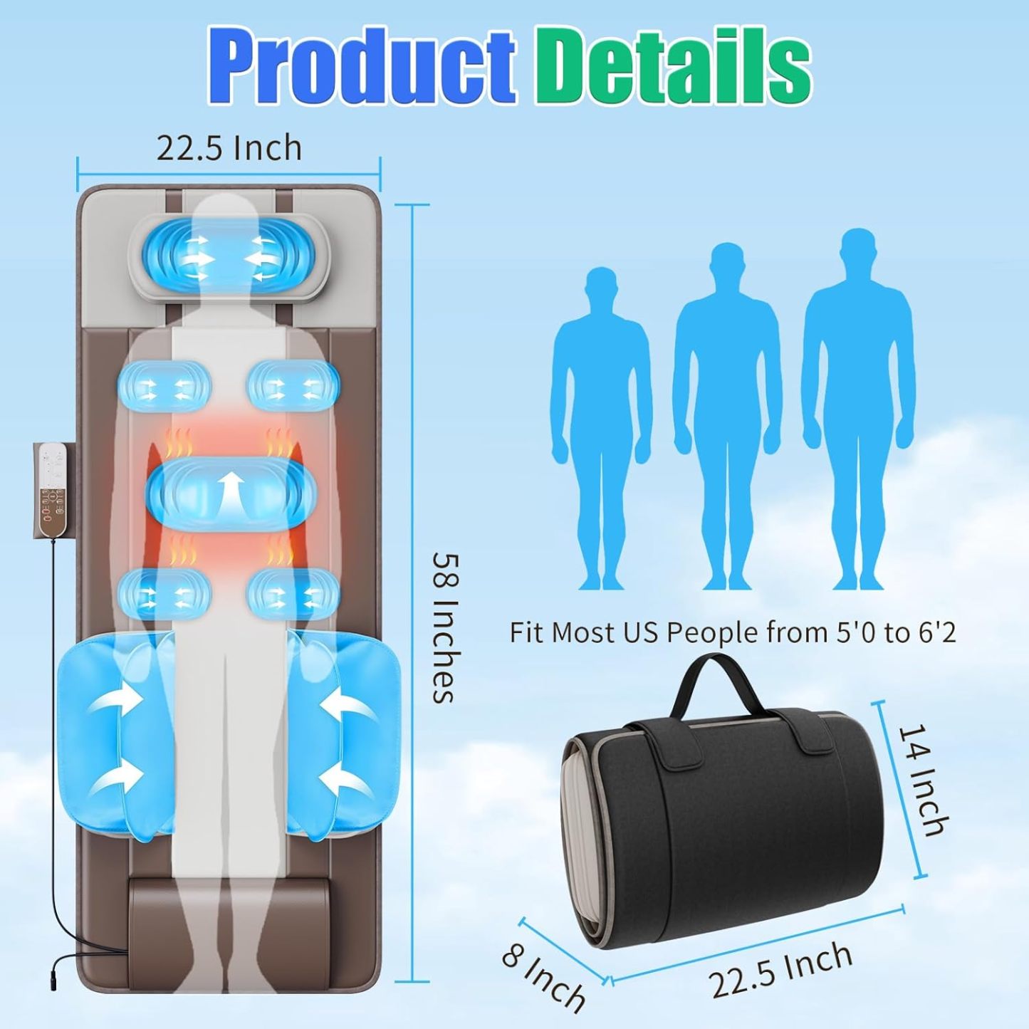 - 【Note Before Purchasing】1. This product only fit 5'1-6'0(155-183cm)! 2. It works perfectly on a bed, sofa, and floor, we don't recommend using it on any chairs or recliners. 3. The massage way is not Shiatsu or Vibrate or Roller! We highly recommend that you read the product video carefully to know the massage way before purchasing!