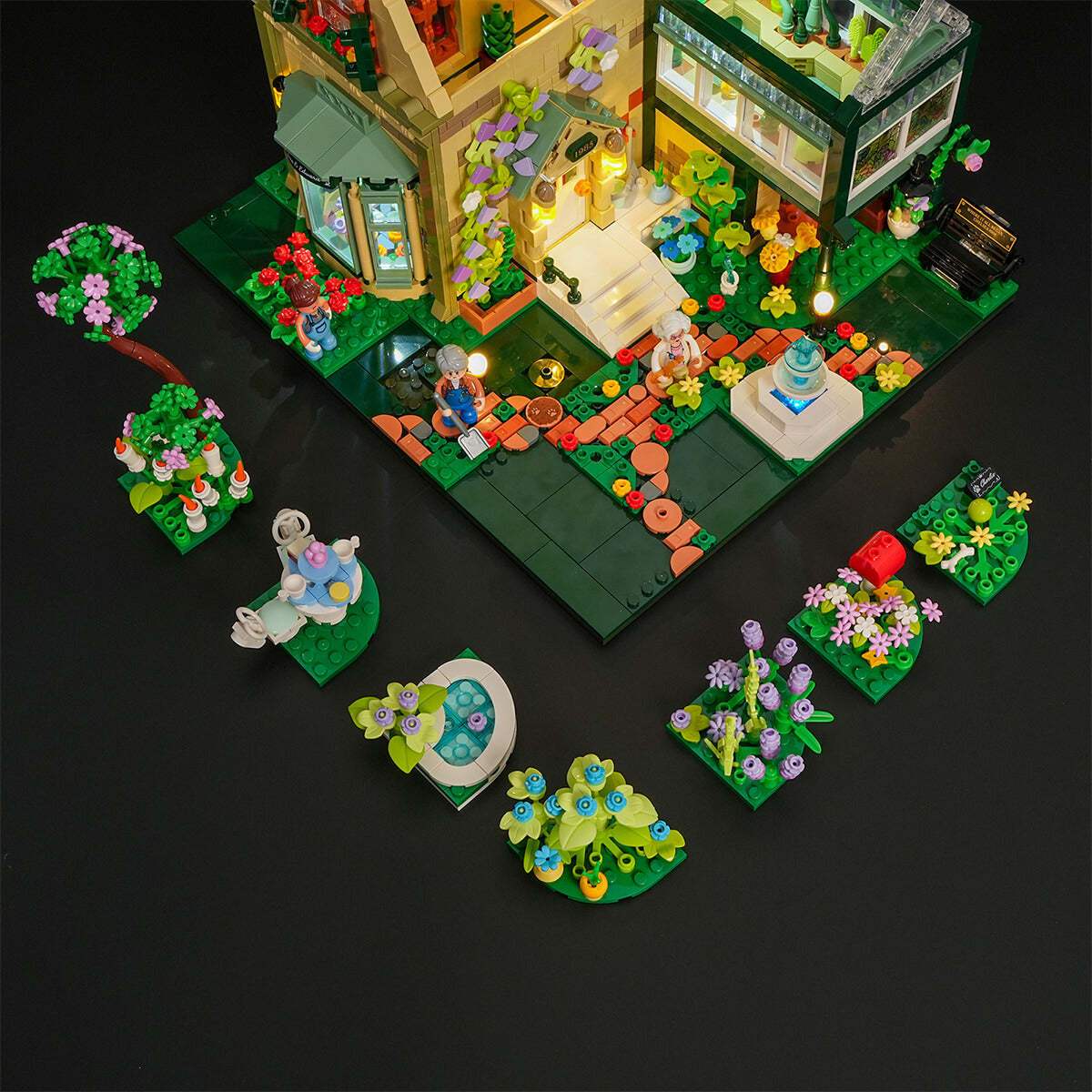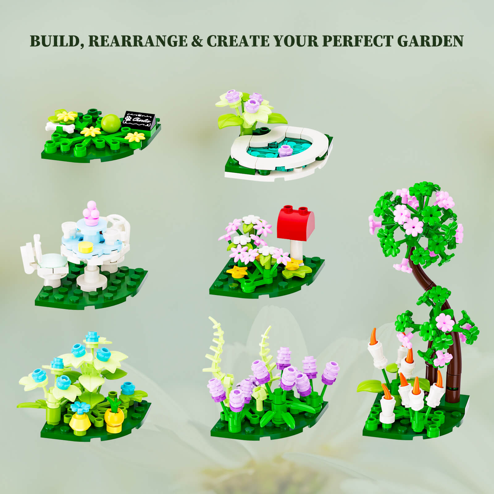 【Modular Garden Scenes】Seven detachable garden modules can be freely arranged and rebuilt. With the 6×6 semicircular base design, they can form a full garden display or stand alone as desk décor.