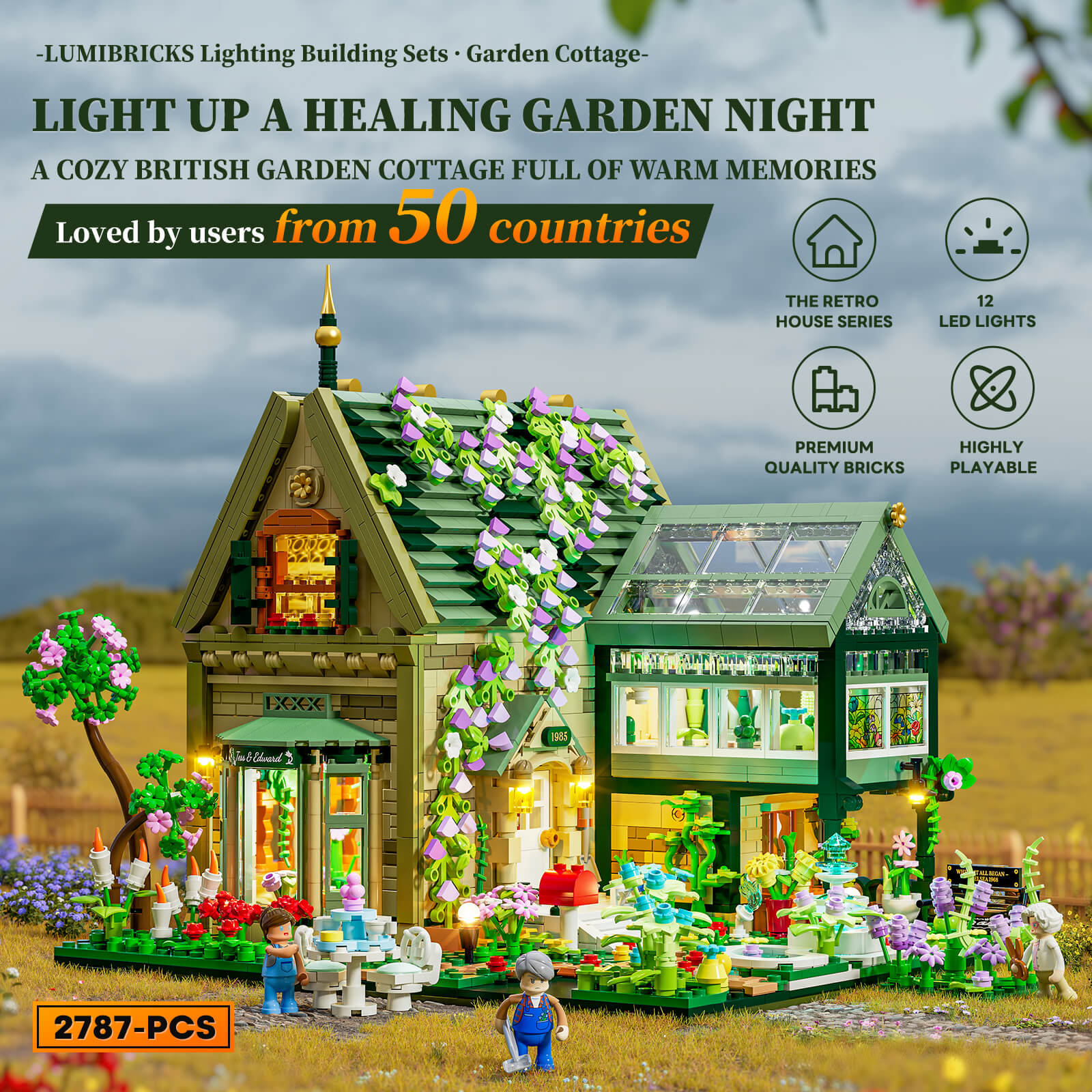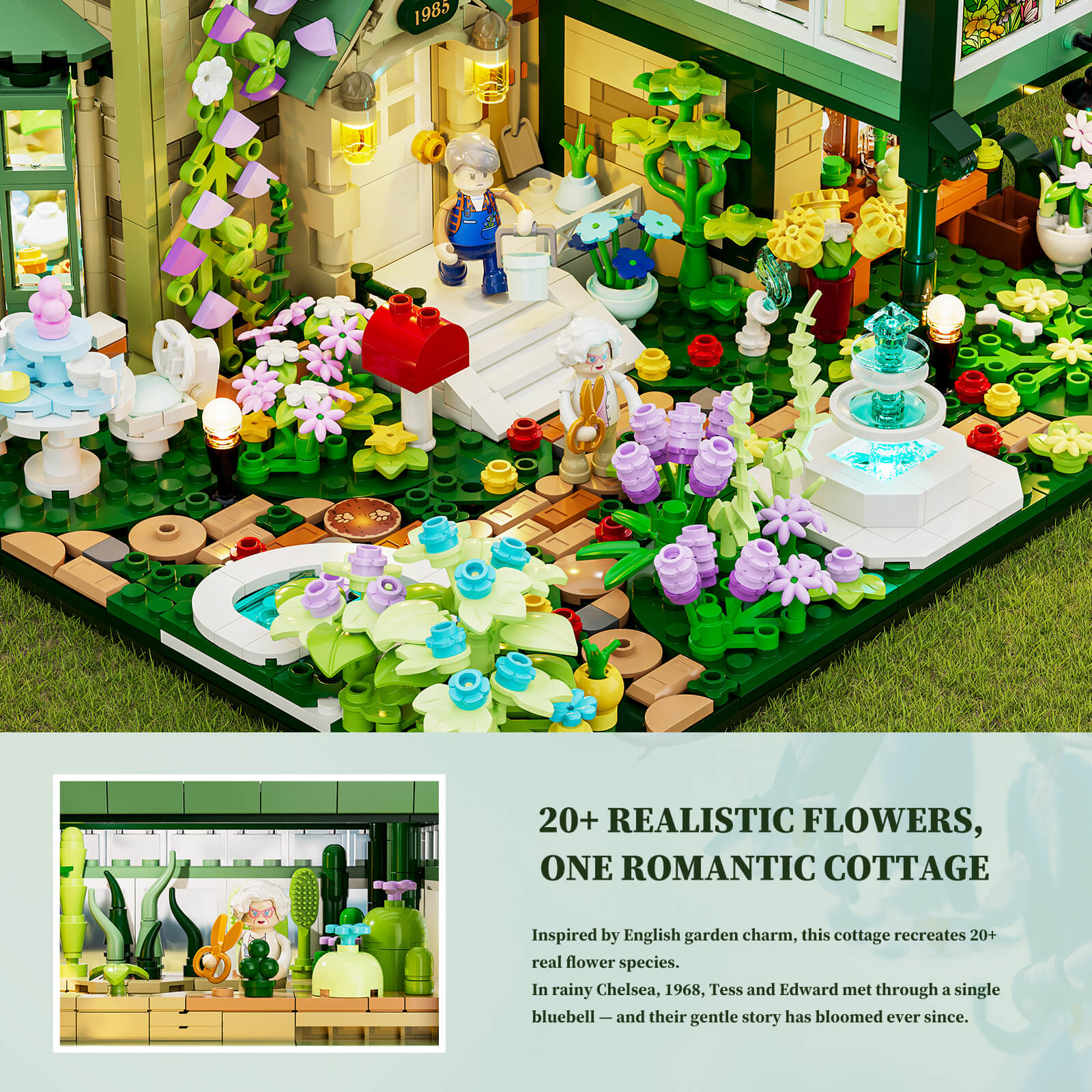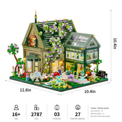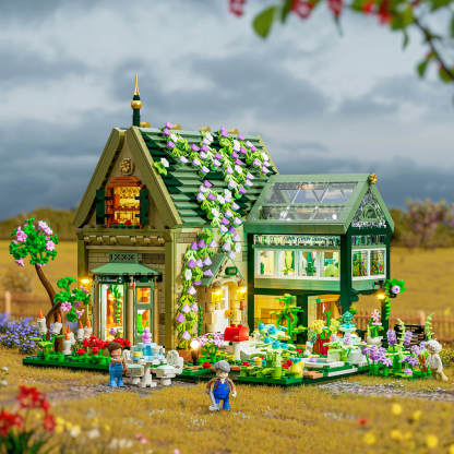 【Authentic British Charm】A brick cottage with a glass greenhouse, paired with a classic English living room, floral décor, and afternoon tea details, recreating the elegance of British lifestyle.