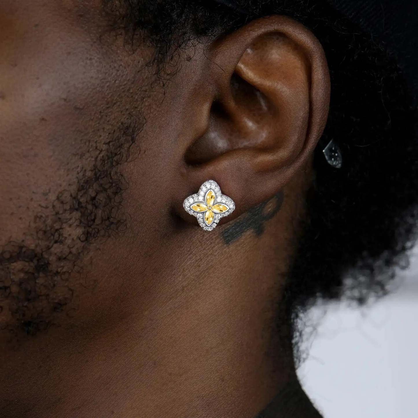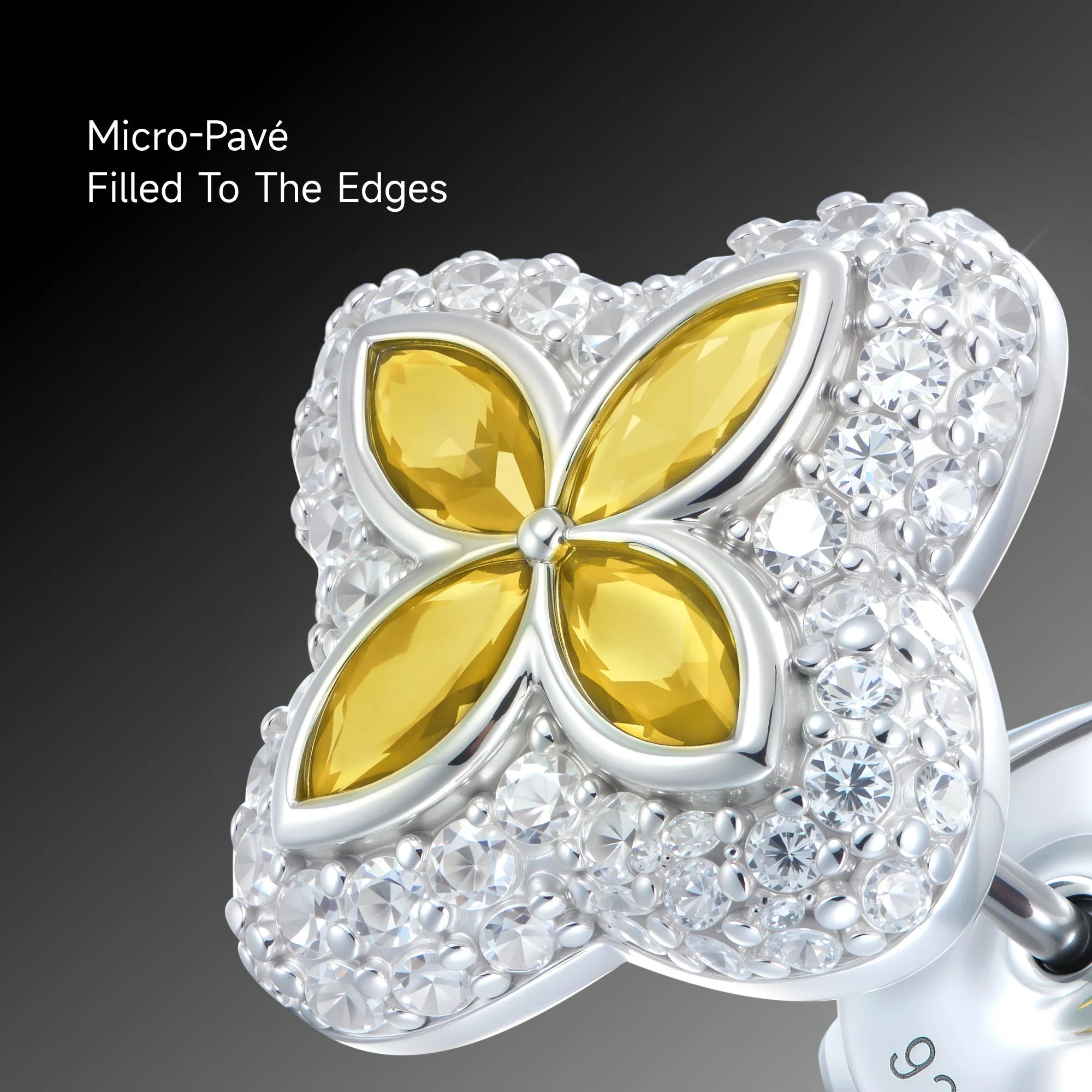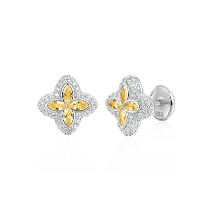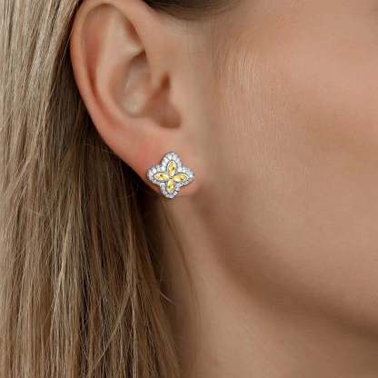 S925 Iced Luminous Clover Earrings - Yellow Diamond