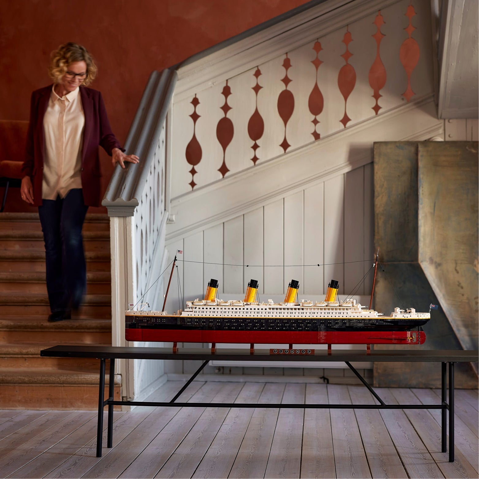 - The ship splits into 3 sections, giving a view of the detailed interior. Assemble and admire the grand staircase, cabins, dining room, smoking lounge, reading lounge and swimming pool.