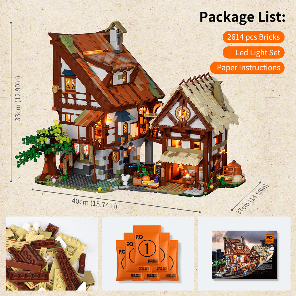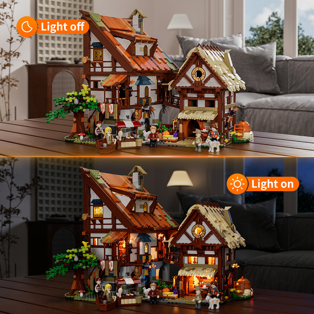 A great collection for fans of medieval style: This 2614 pieces medieval market model comes with two instruction books, including clear instructions for lighting installation and assembly, making it easy for beginners to build their own medieval scene in step-by-step stages. It is suitable for block enthusiasts who are passionate about creating medieval-themed backdrops.