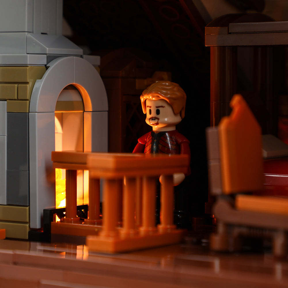 Authentic Lighting Design: The lighting design of different locations within the scene includes fireplaces, beeswax candles, torches and bowls of butter candles. Outside, the lights staggered and flickered to simulate the effect of being blown by the wind. The warm orange lights inside stay on, just like the lights in the townspeople's homes at night.