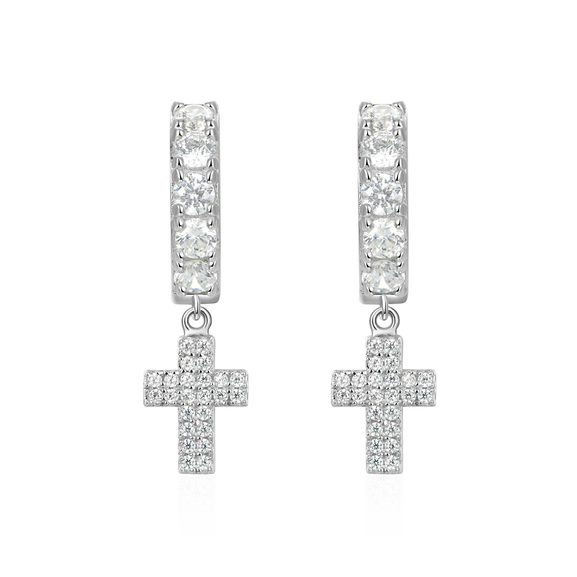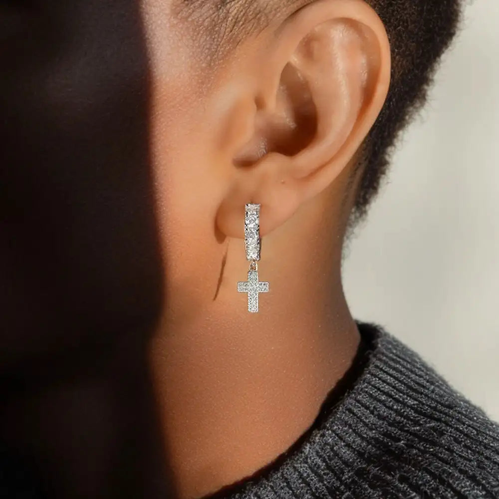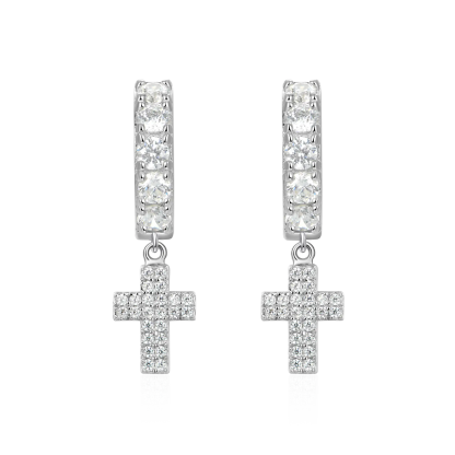 The Moissanite Cross Dangly Earring combines spiritual symbolism with dazzling elegance. Crafted from high-quality silver and set with brilliant moissanite stones, the cross dangles gracefully, adding a bold touch to your look. Perfect for those who want to express faith with style, this earring adds shine and sophistication to any occasion.