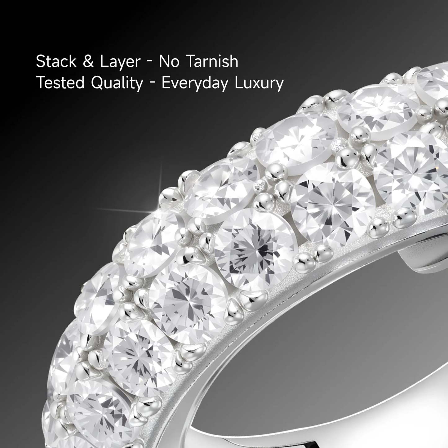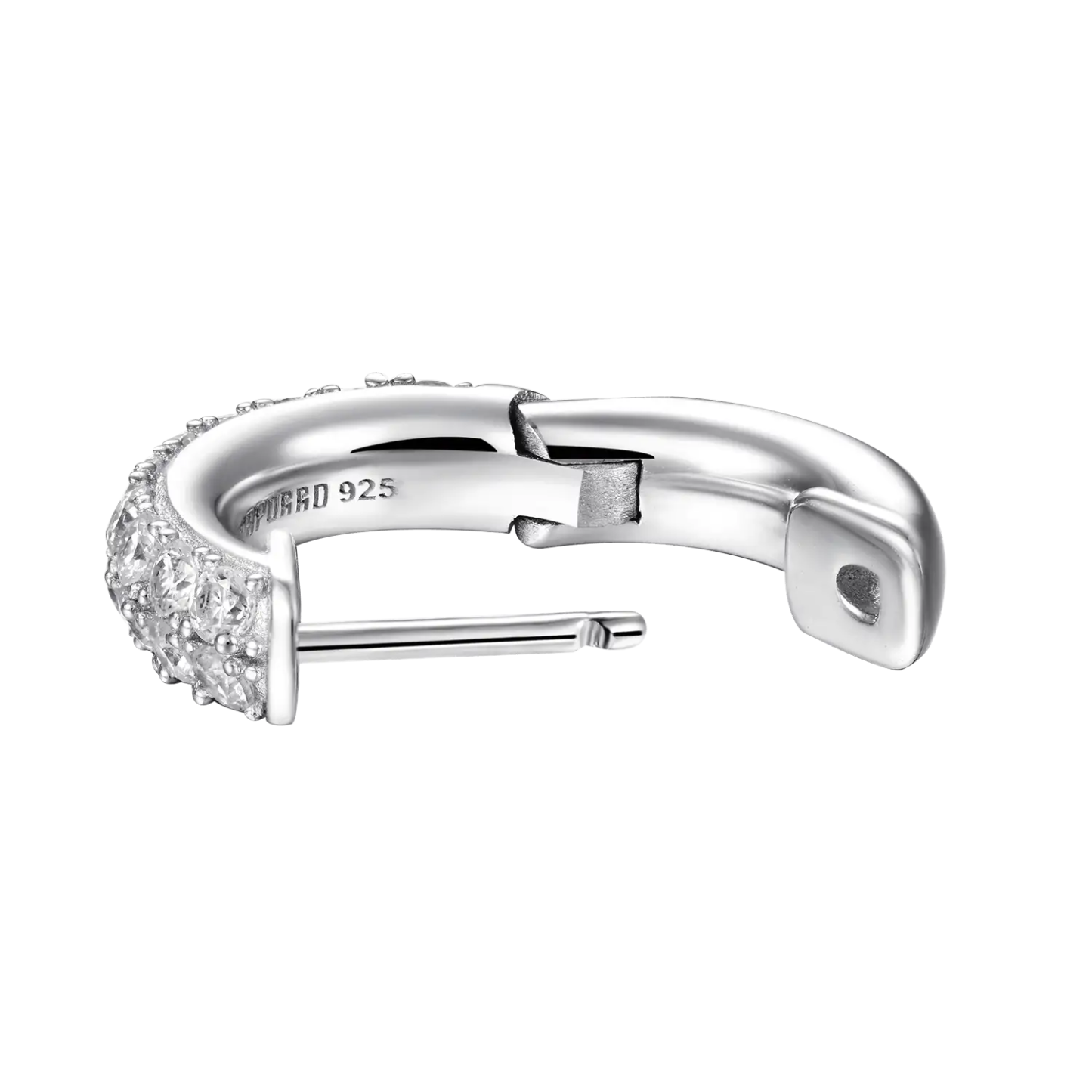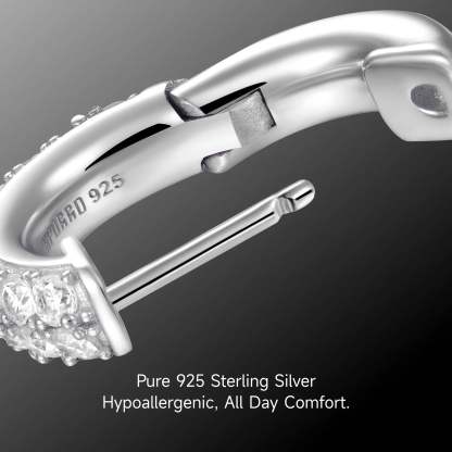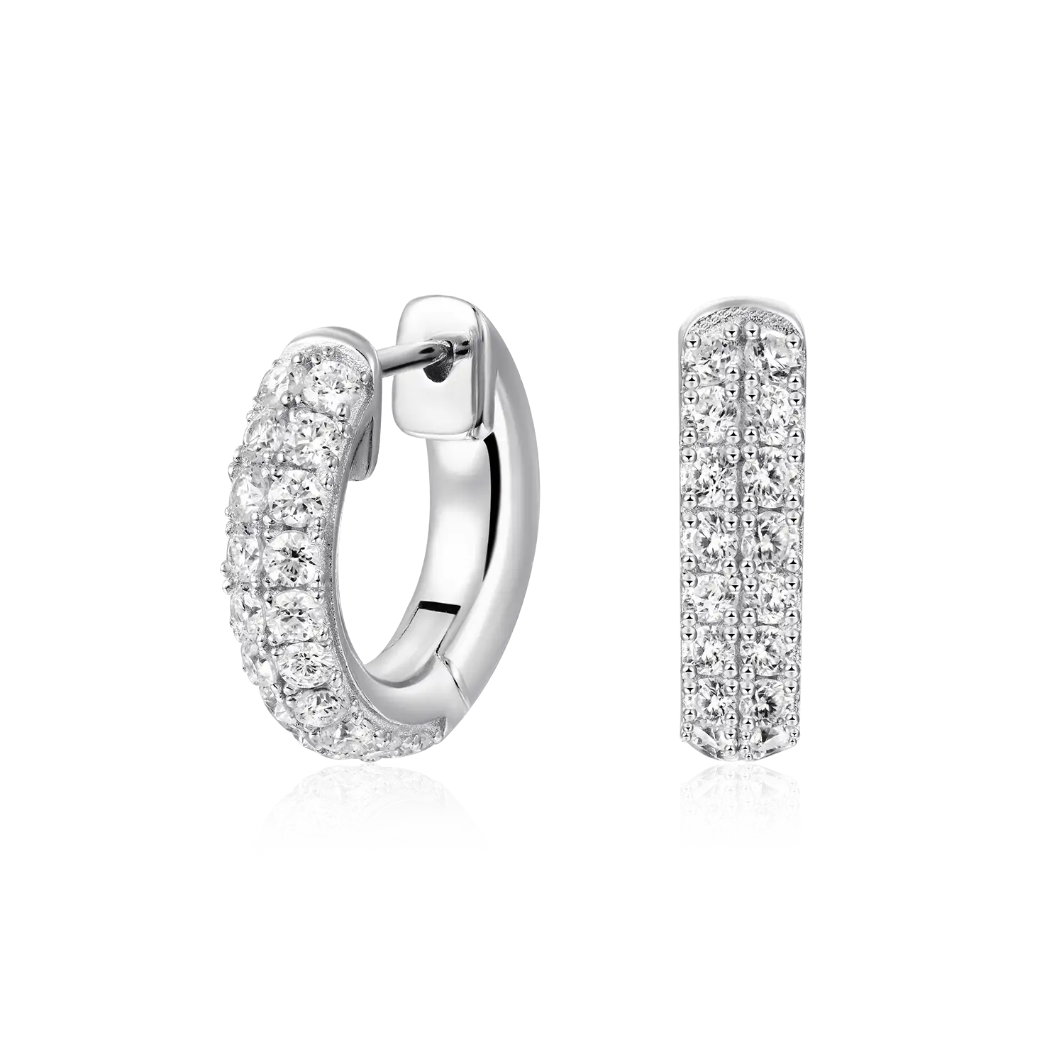 A minimalist design with a delicate double row/three rows of moissanite of moissanite, the Moissanite Double Row Hoop Earrings are entirely handcrafted with 925 sterling silver and VVS moissanite. Versatile and elegant, these earrings are must-haves for any occasion.