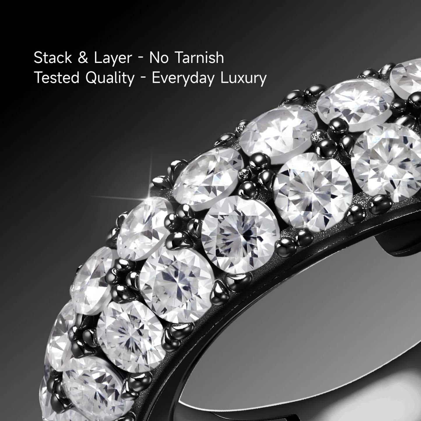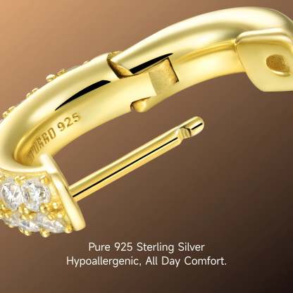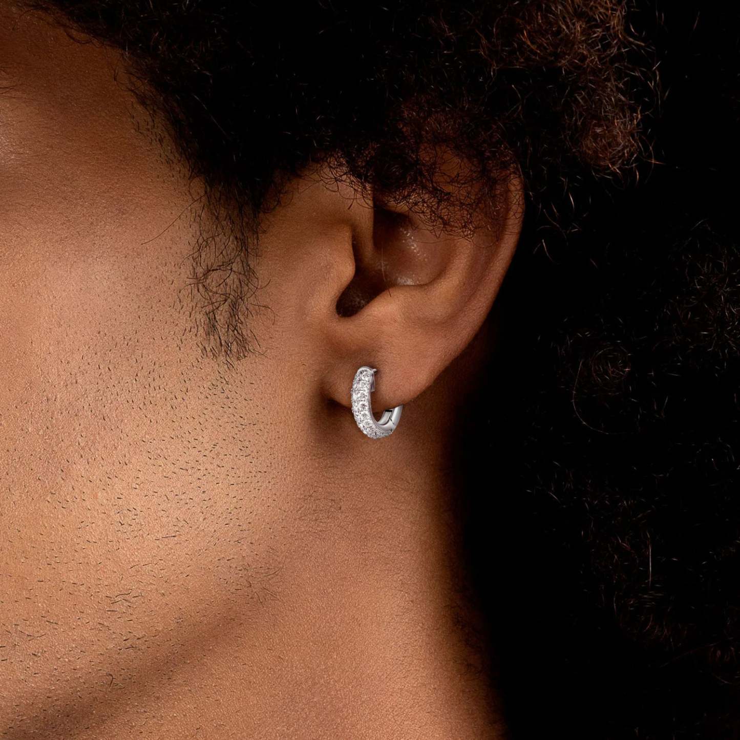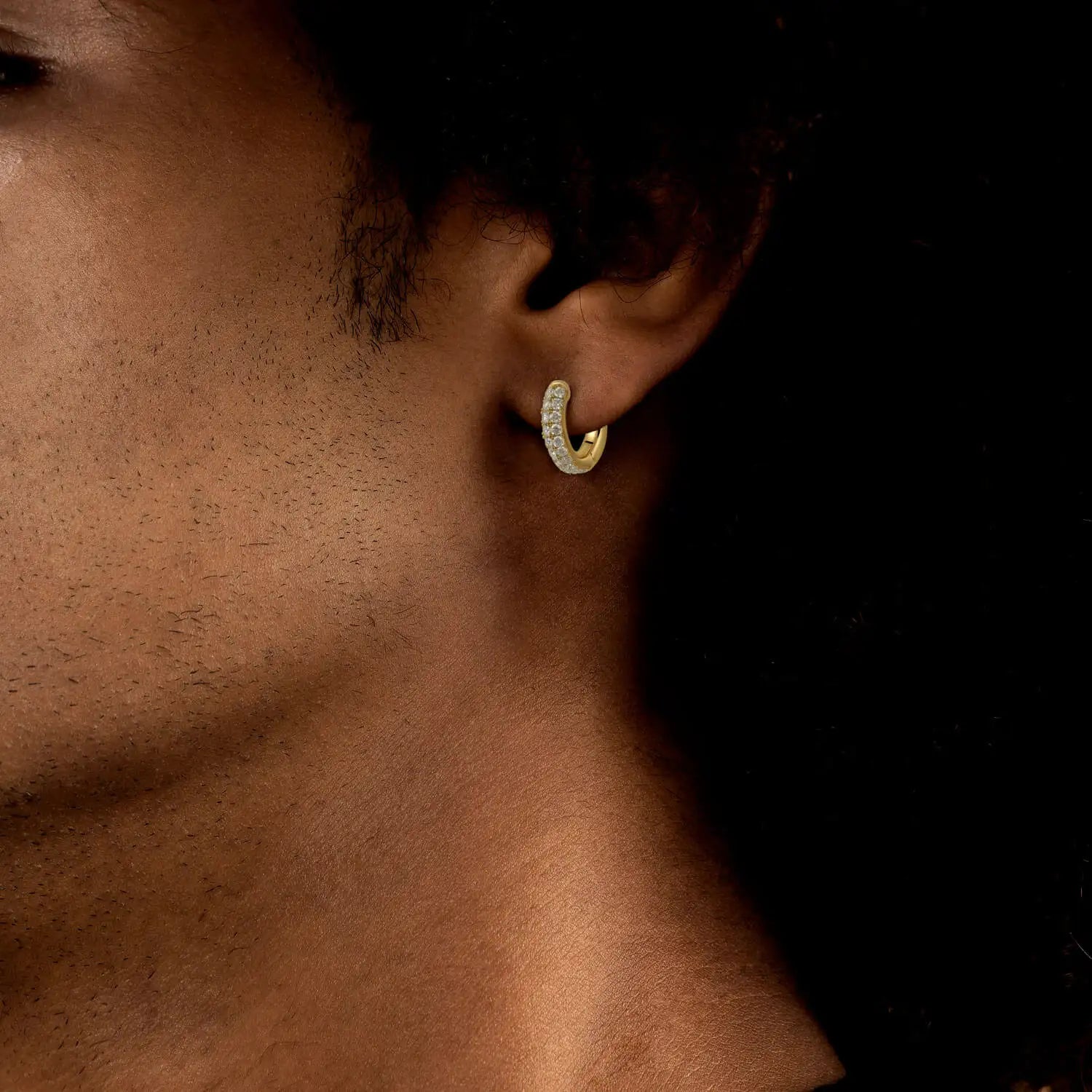 A minimalist design with a delicate double row/three rows of moissanite of moissanite, the Moissanite Double Row Hoop Earrings are entirely handcrafted with 925 sterling silver and VVS moissanite. Versatile and elegant, these earrings are must-haves for any occasion.