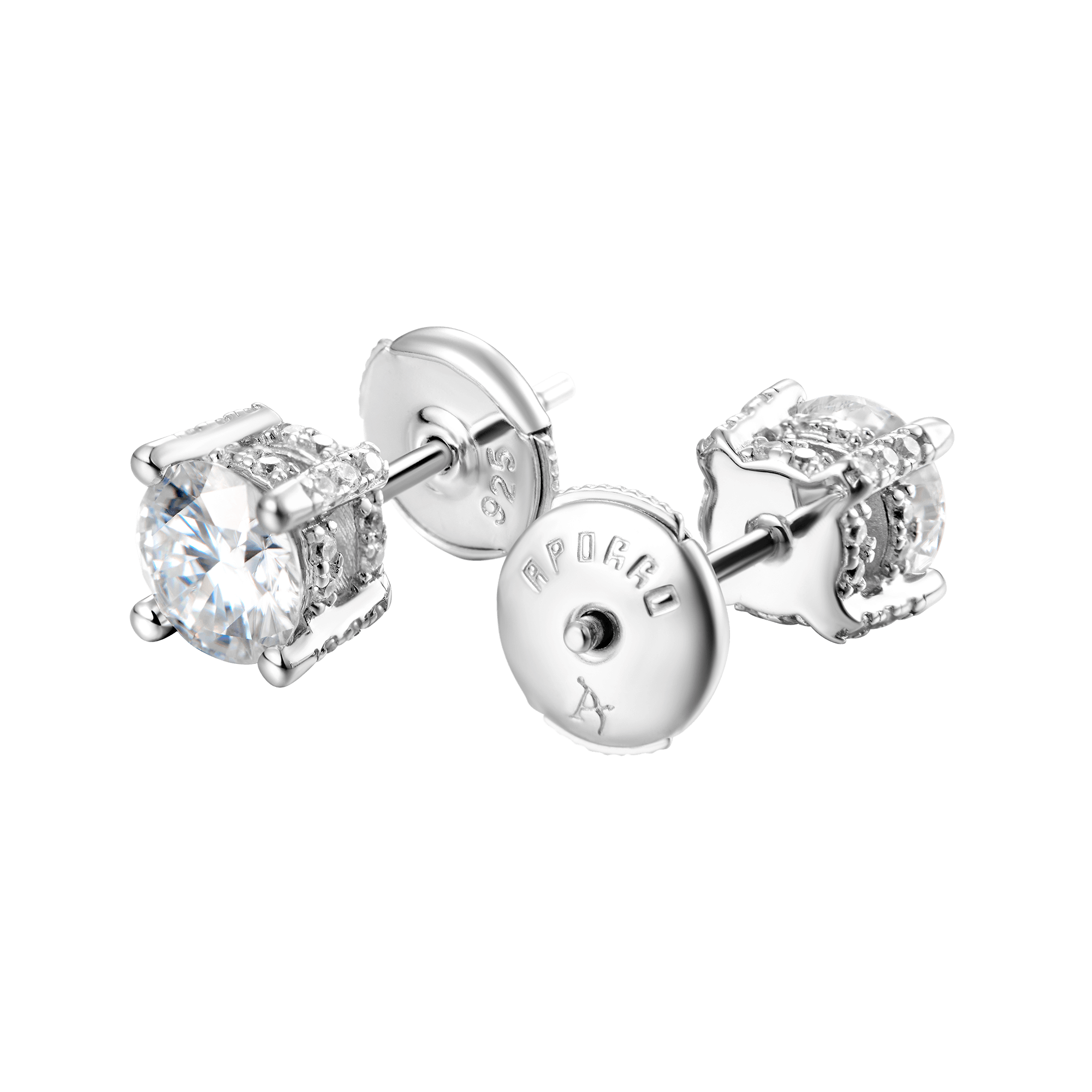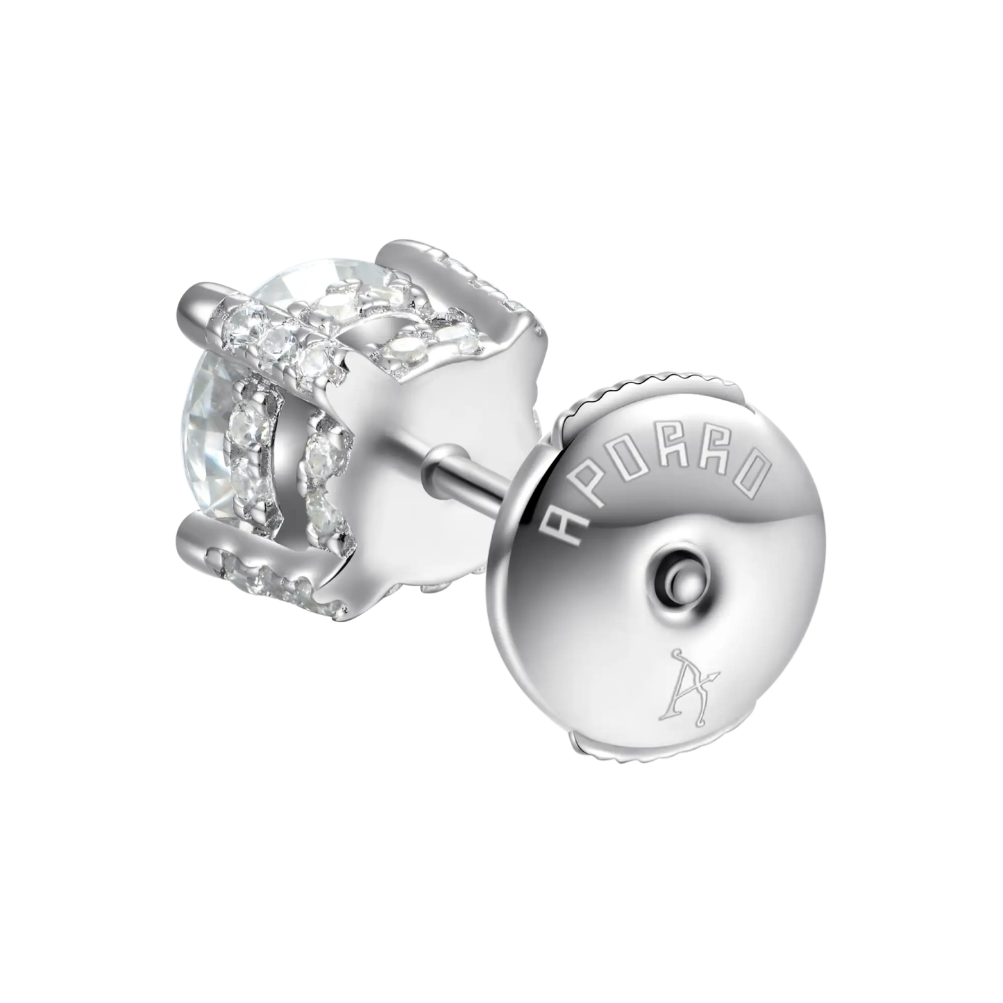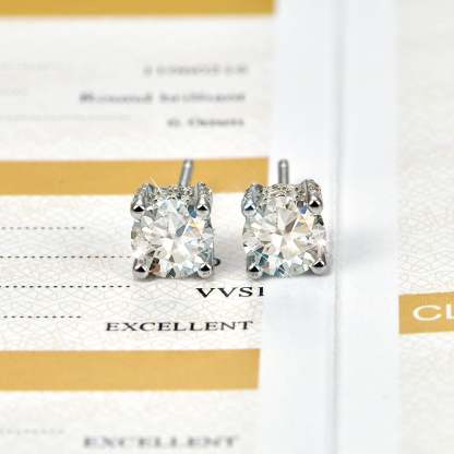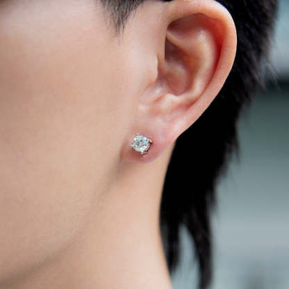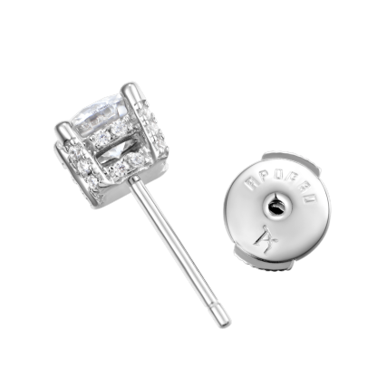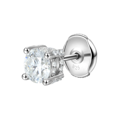 Simplicity at its finest. This earring is made of Moissanite as the main stone and decorated with CZ stones around it, which are inlaid by luxury jewelry craftsmanship, then plated with white gold. Regardless of men and women, this earring is indispensable in your daily wear.