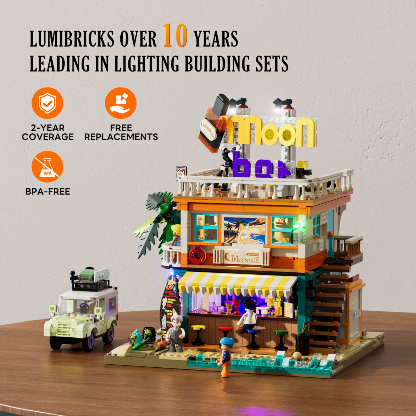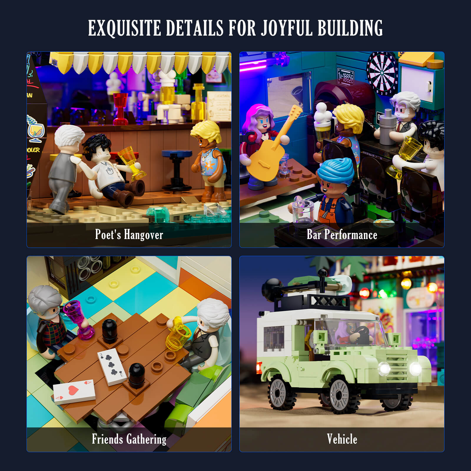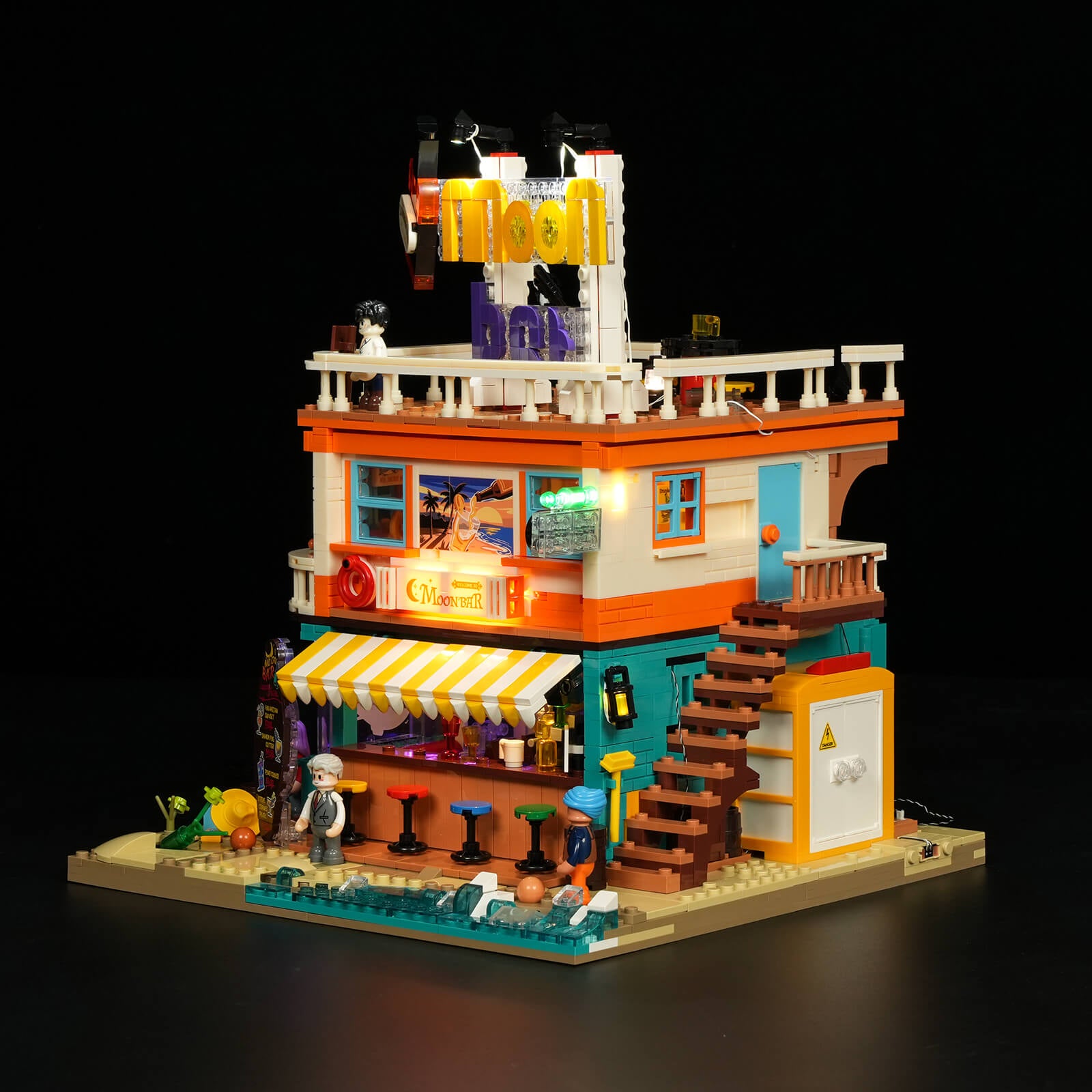 【Easy Access & Interactive Design】Layered quick-release and open-back design allow each floor—from bar to rooftop—to be displayed and explored with ease, revealing rich interior details and interactive scenes.