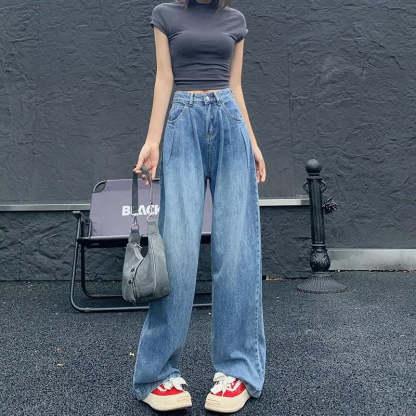 Product information: Thickness: medium Fabric name: denim Color: blue Elasticity: inelastic Main fabric composition: Cotton Pants length: trousers Waist type: high waist Size: XS,S,M,L,XL,2XL,3XL,4XL Pants type: Loose Popular elements: Pocket