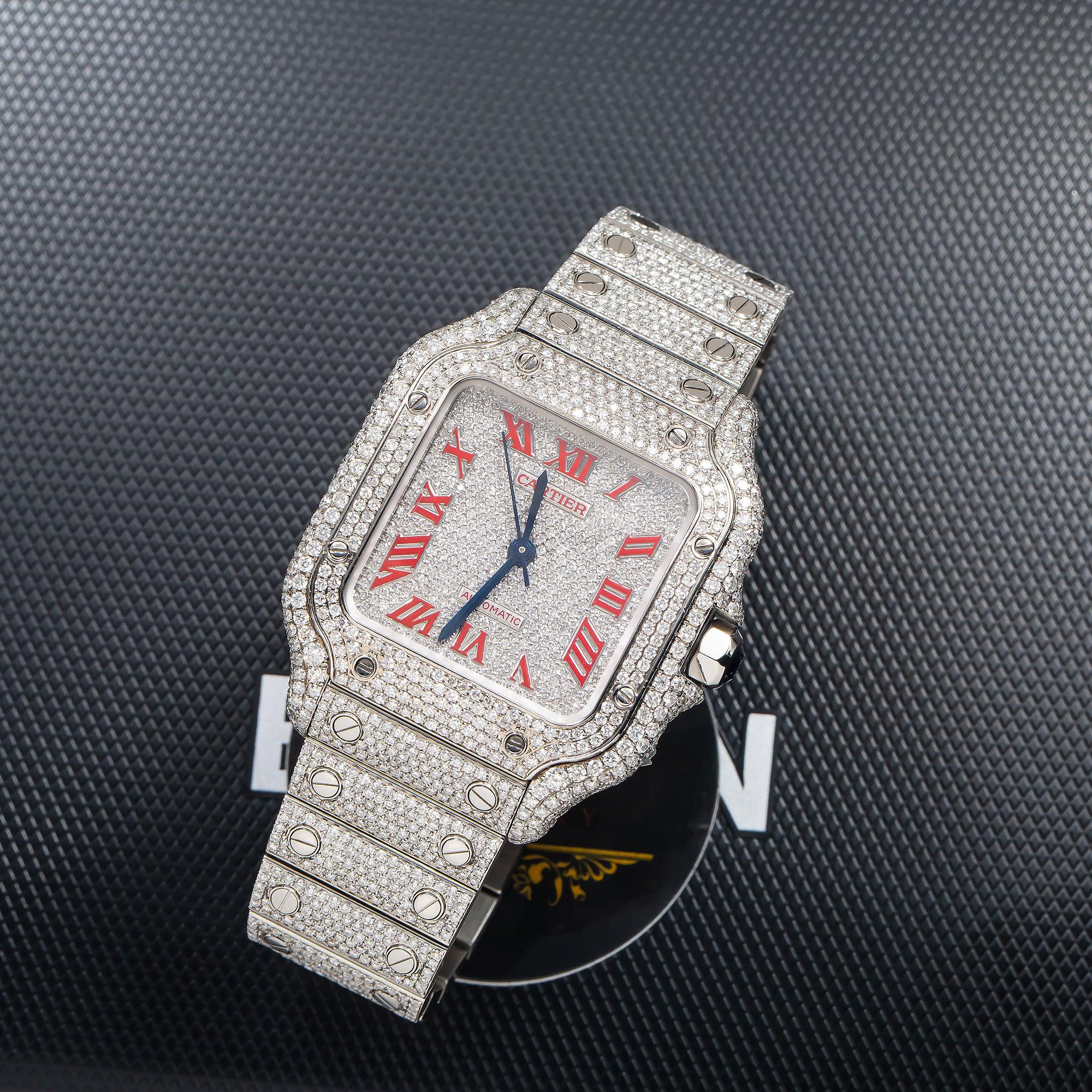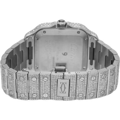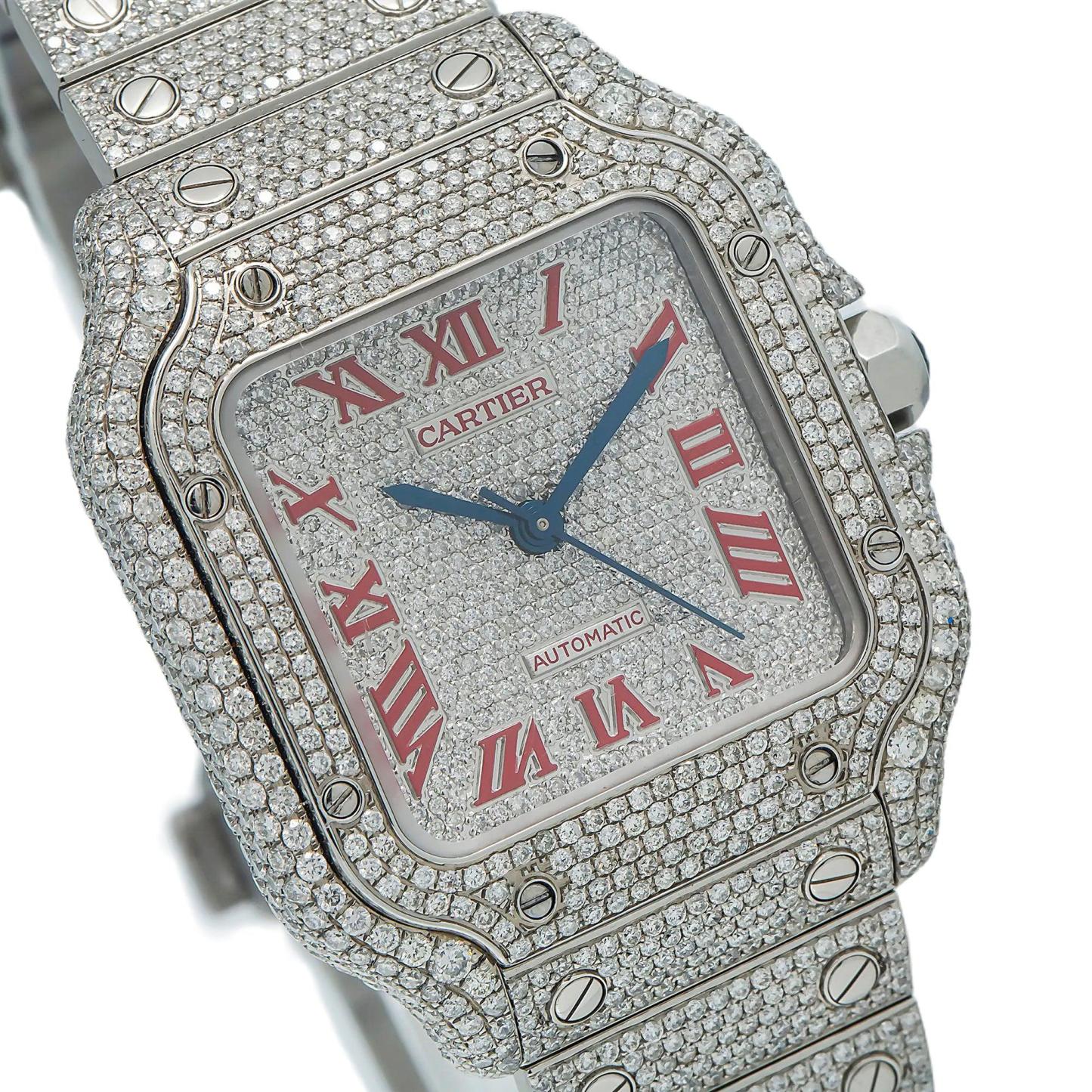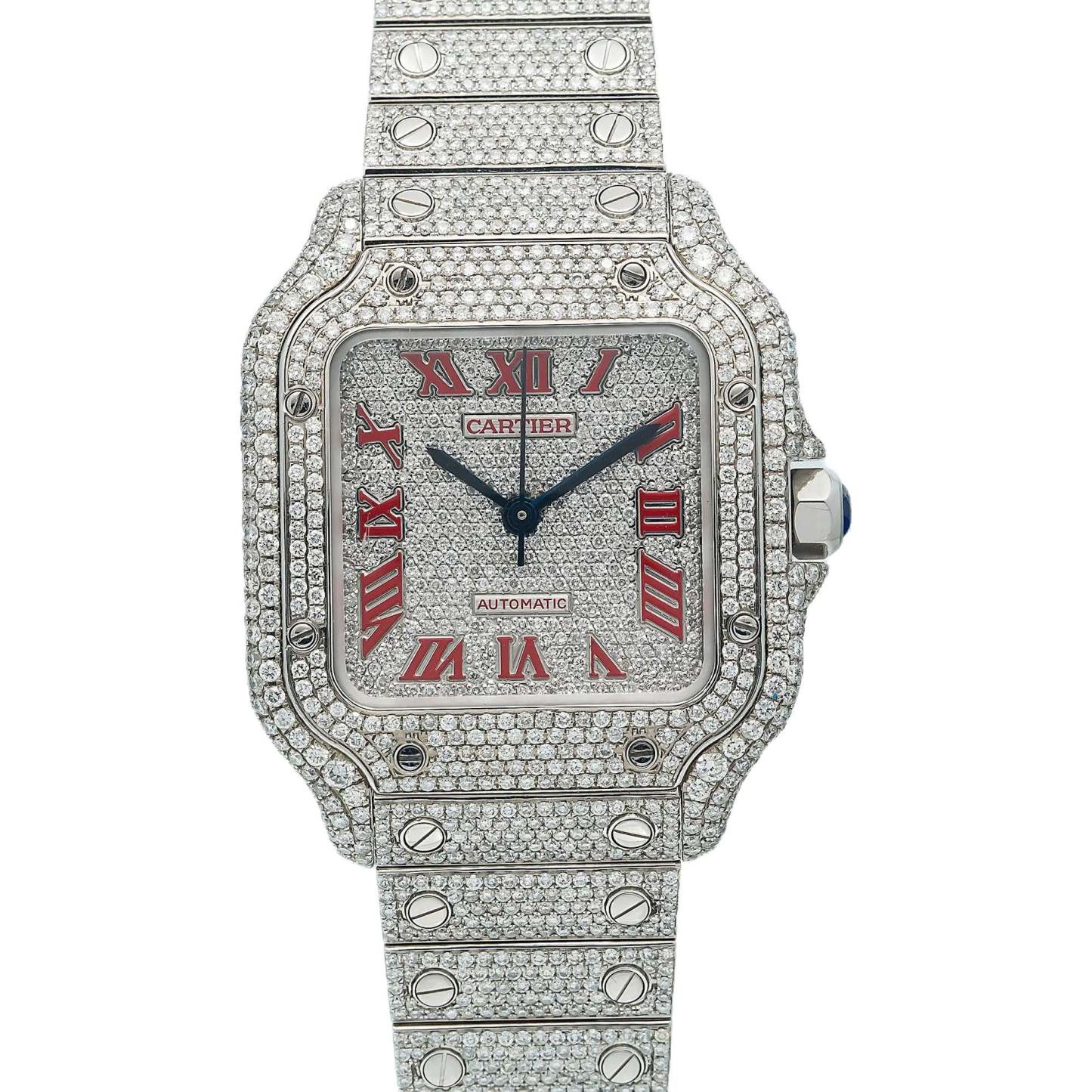 Santos 35.1MM WSSA0029 Diamond Paved Roman Dial Diamond Paved Bezel Stainless Steel Full Diamond Bracelet 11.65ct