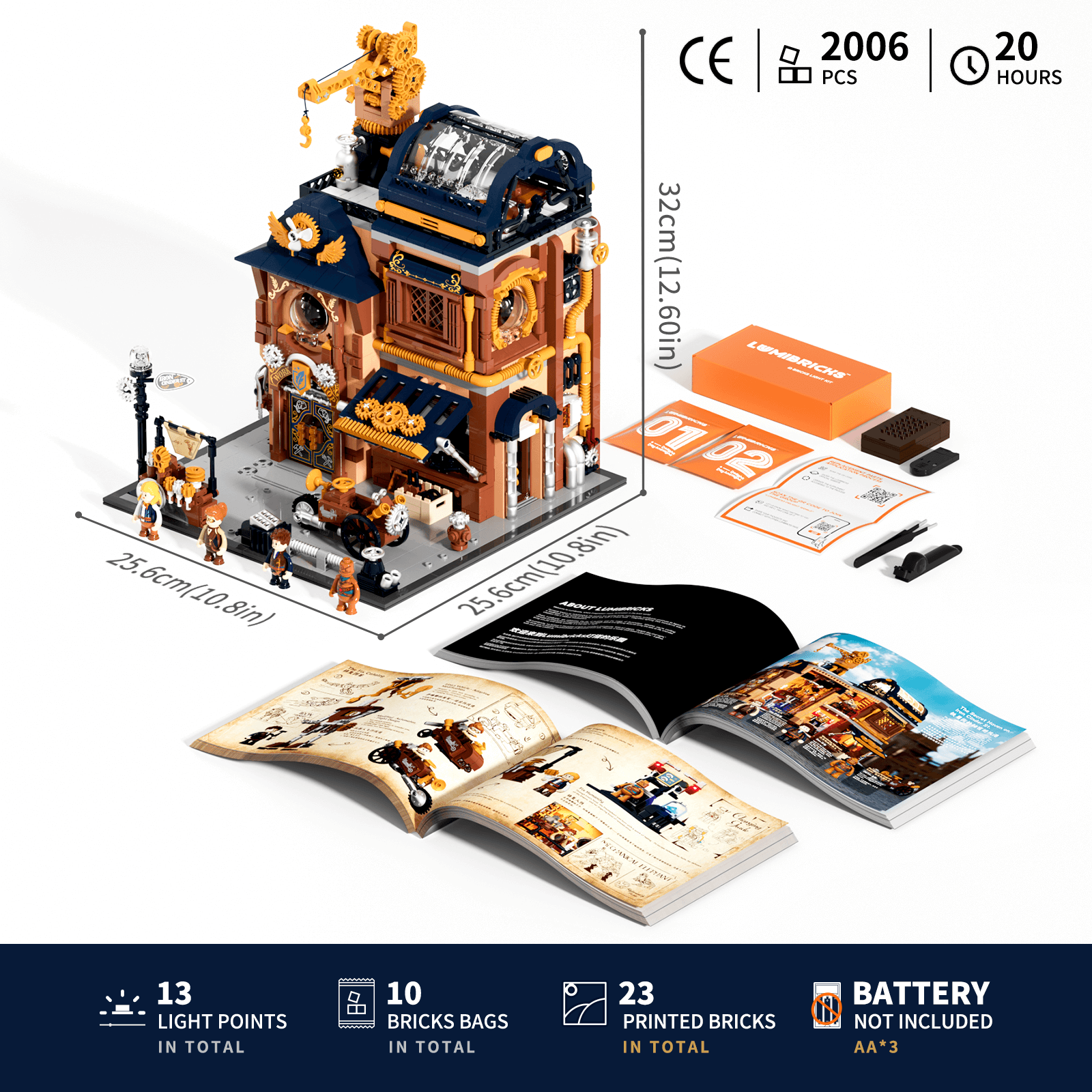 【Package List】The product includes building blocks 2006PCS, 10 bricks bags, 13 LED lights, 23 printed bricks and 2 clear assembly guides.