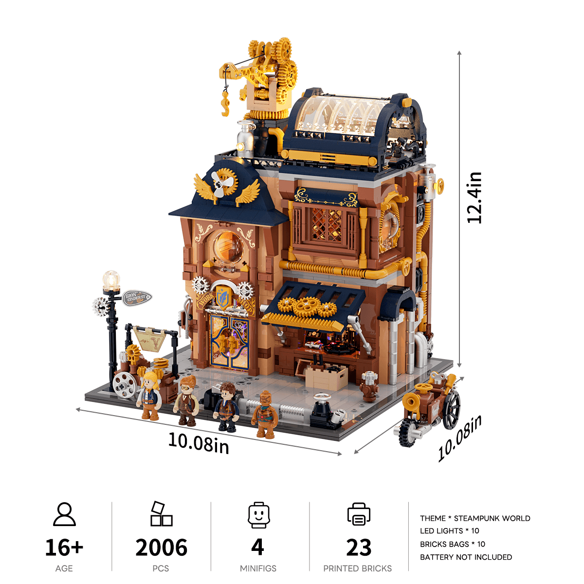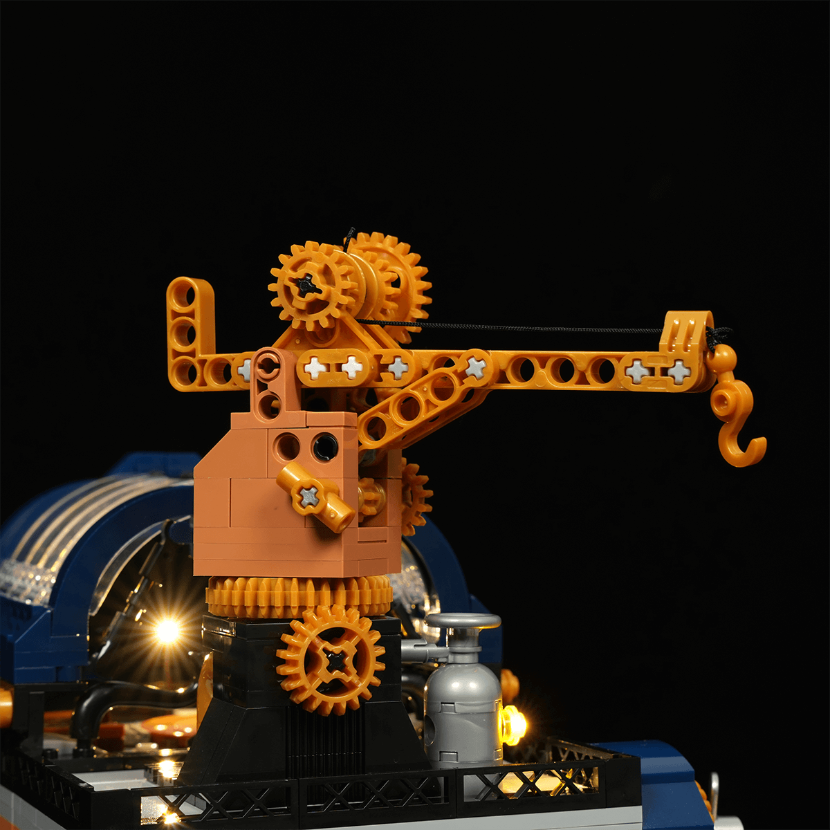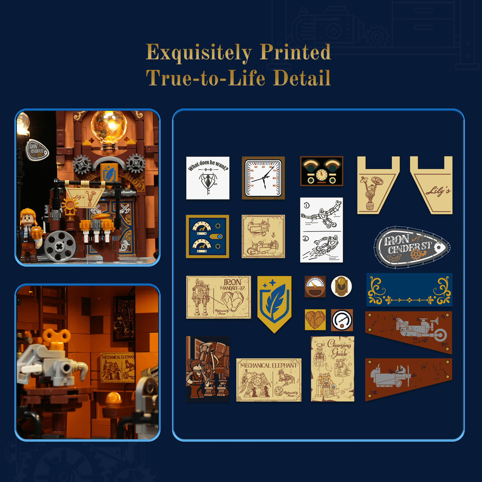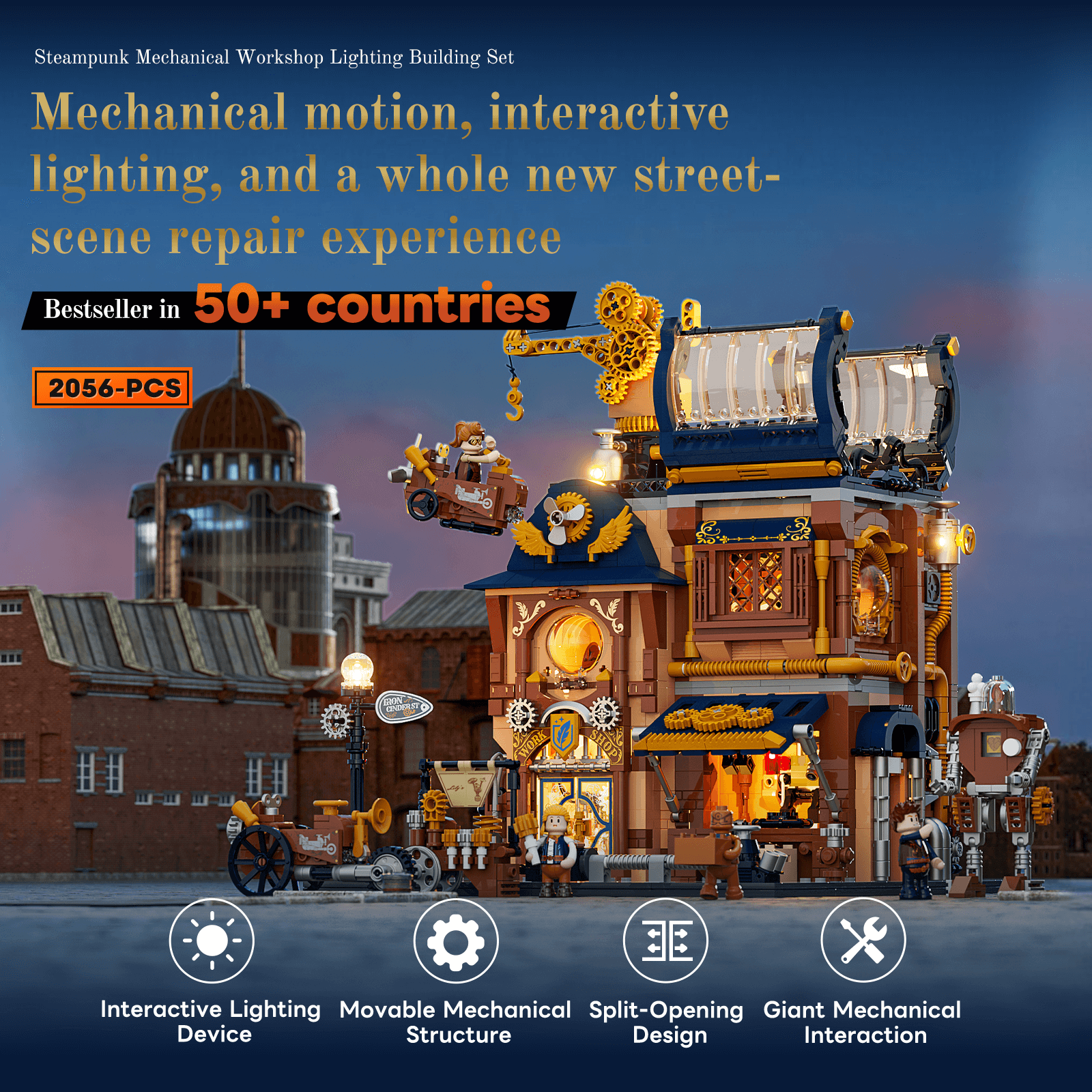 【Immersive Mechanical Light Experience】Building upon steampunk-inspired retro lighting, this interactive display features dynamic effects triggered by model assembly and minifigure interactions.