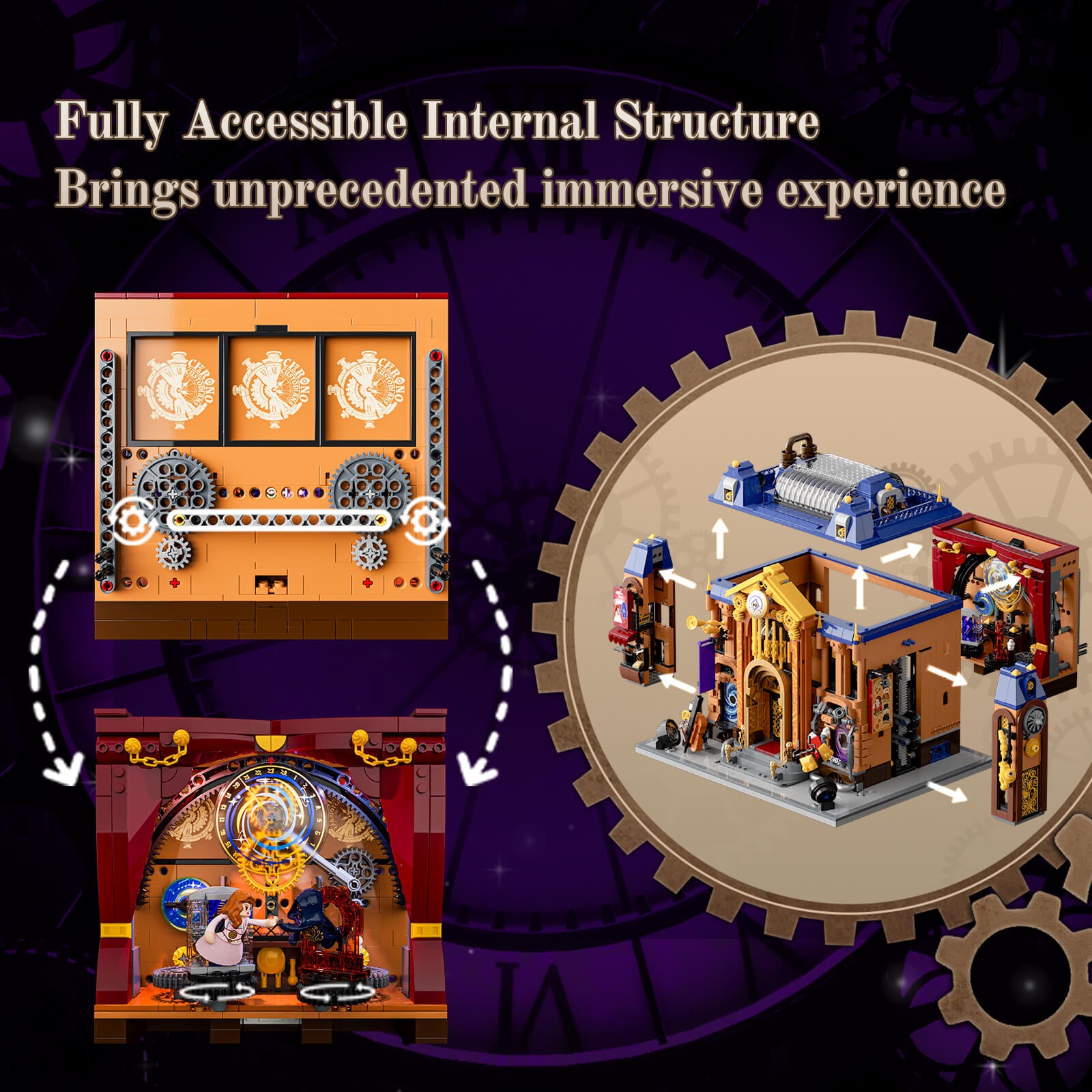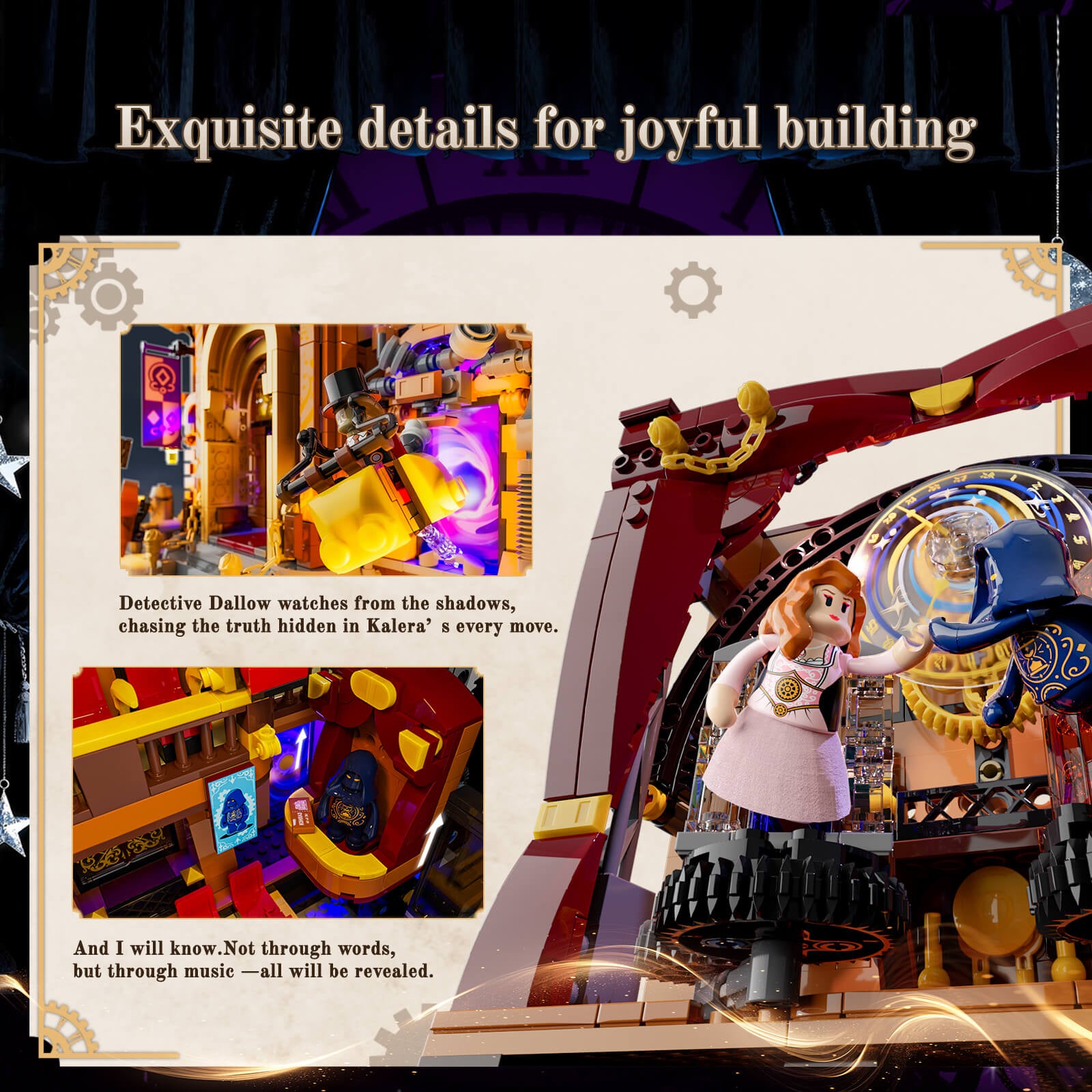 【Collector-Grade Detailed Pieces】Featuring 28 printed bricks and 37 metallic spray parts, meticulously recreating the Victorian steampunk and magical opera house, with portal motifs and a flying detective to evoke a time-traveling fantasy.