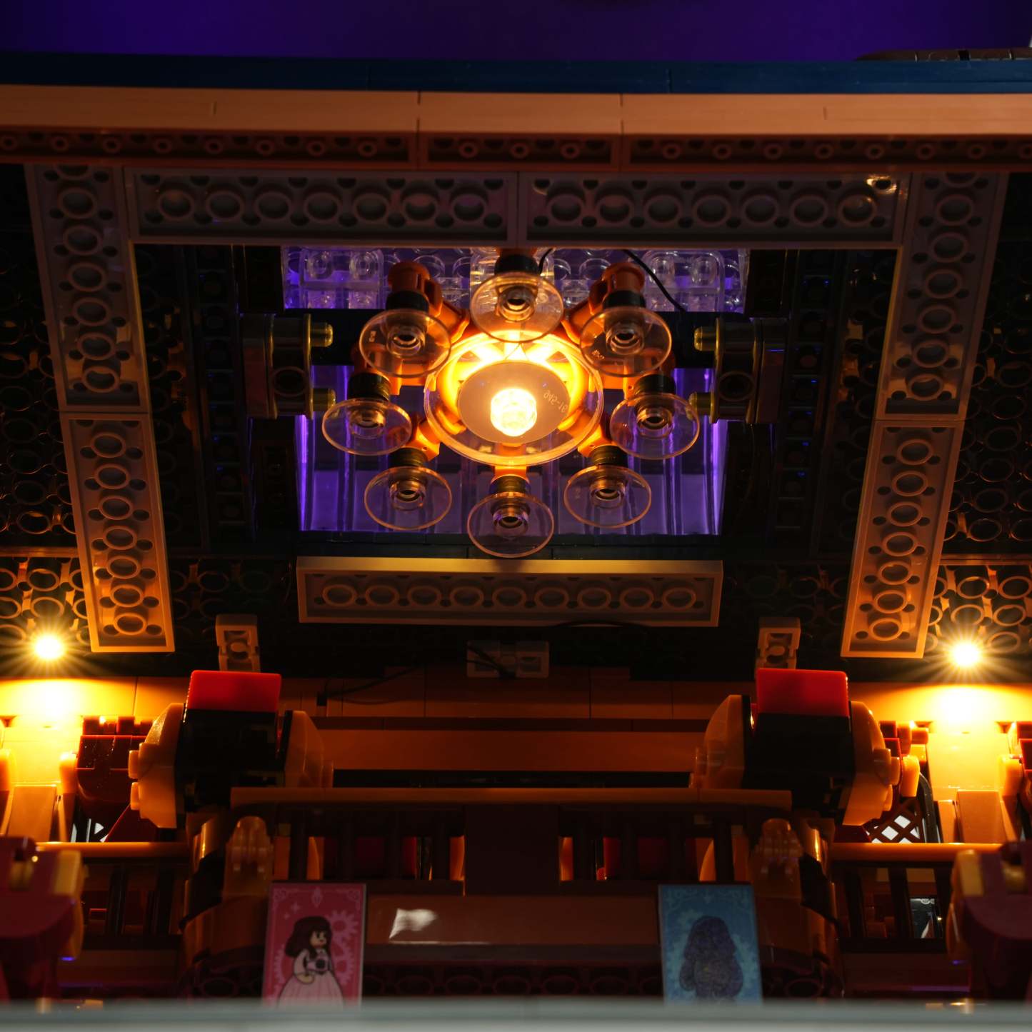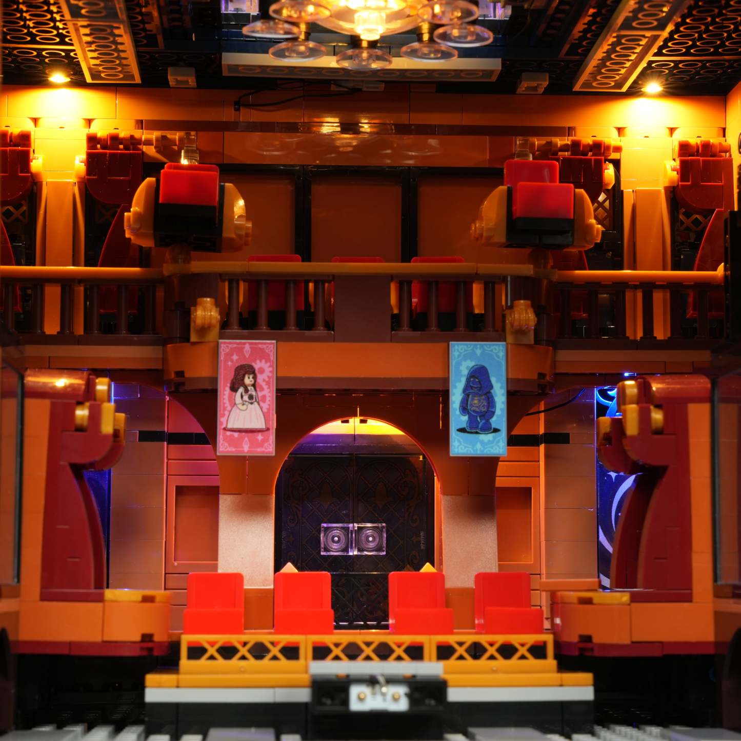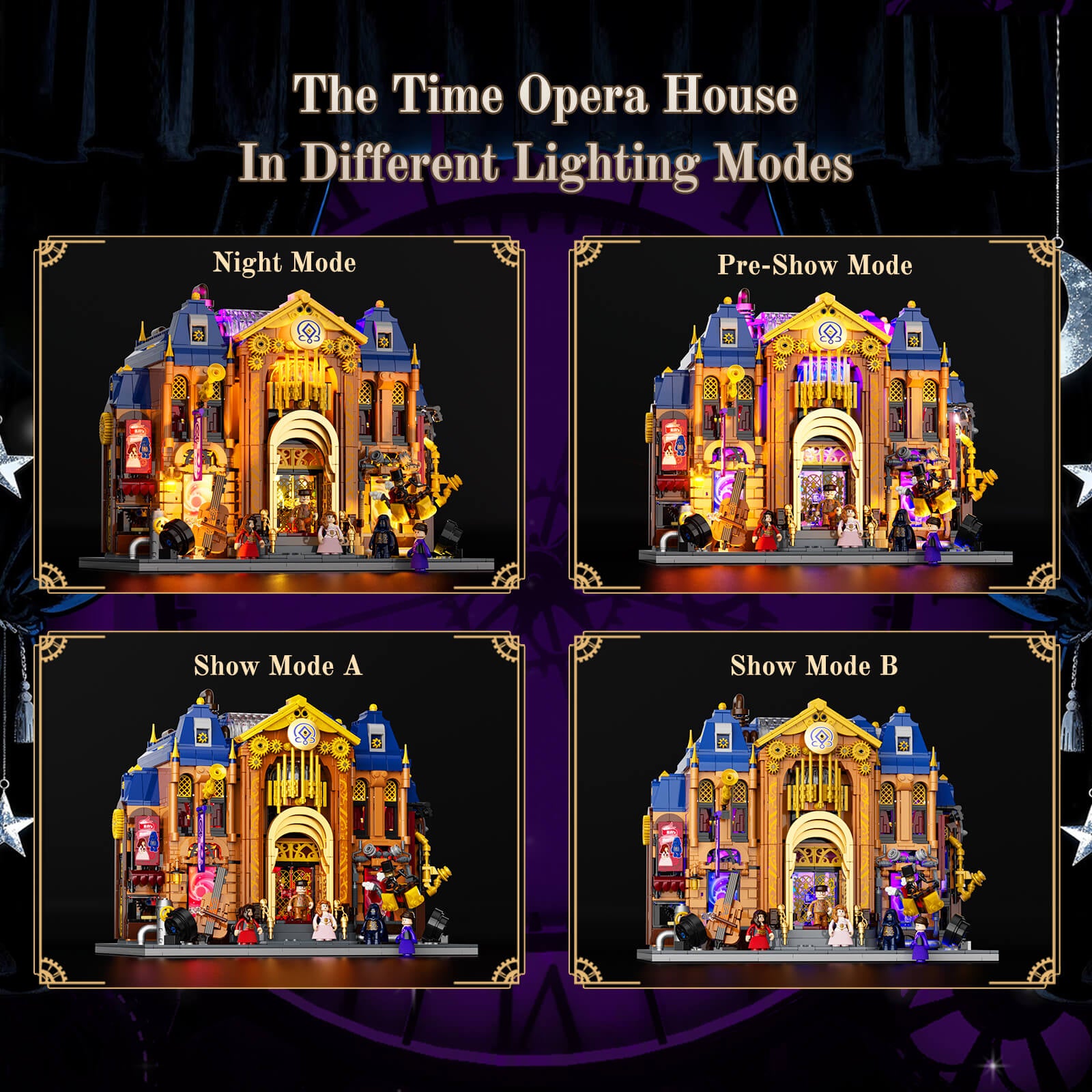 【Three Lighting Modes】Switch between Night, Pre-Show, and Performance modes via touch control—transitioning from warm Victorian glow to dramatic red and blue stage lighting for an immersive theater experience.