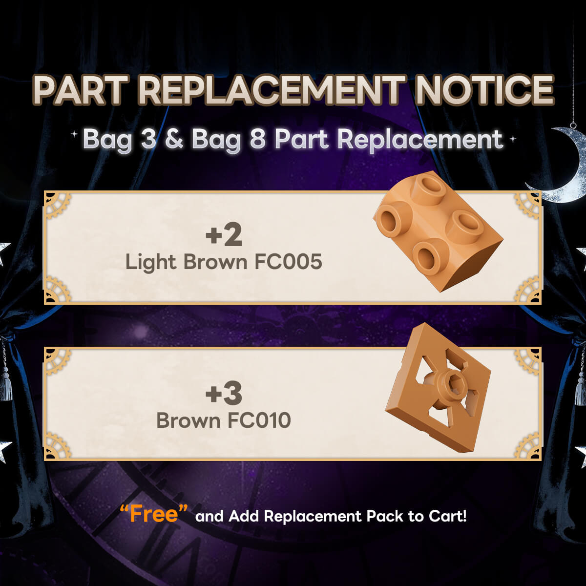 Your missing parts (Bag 3 & Bag 8) have been confirmed.