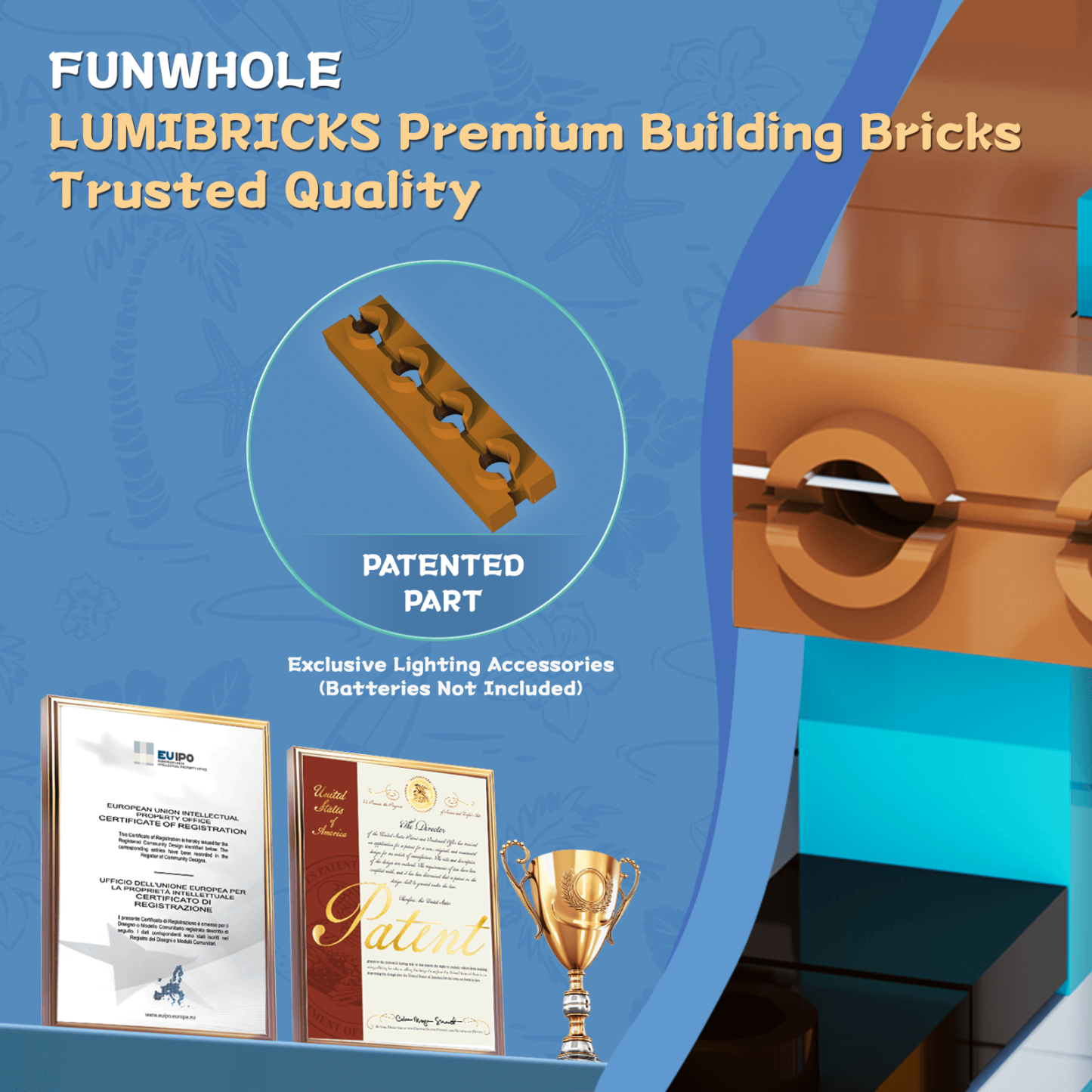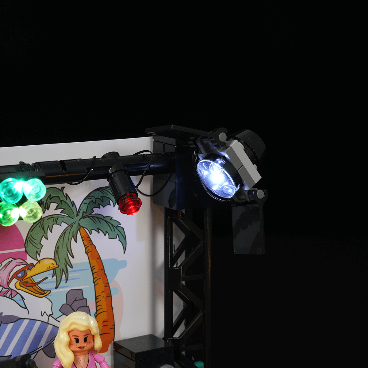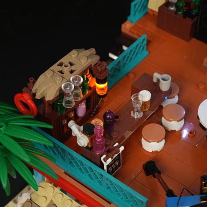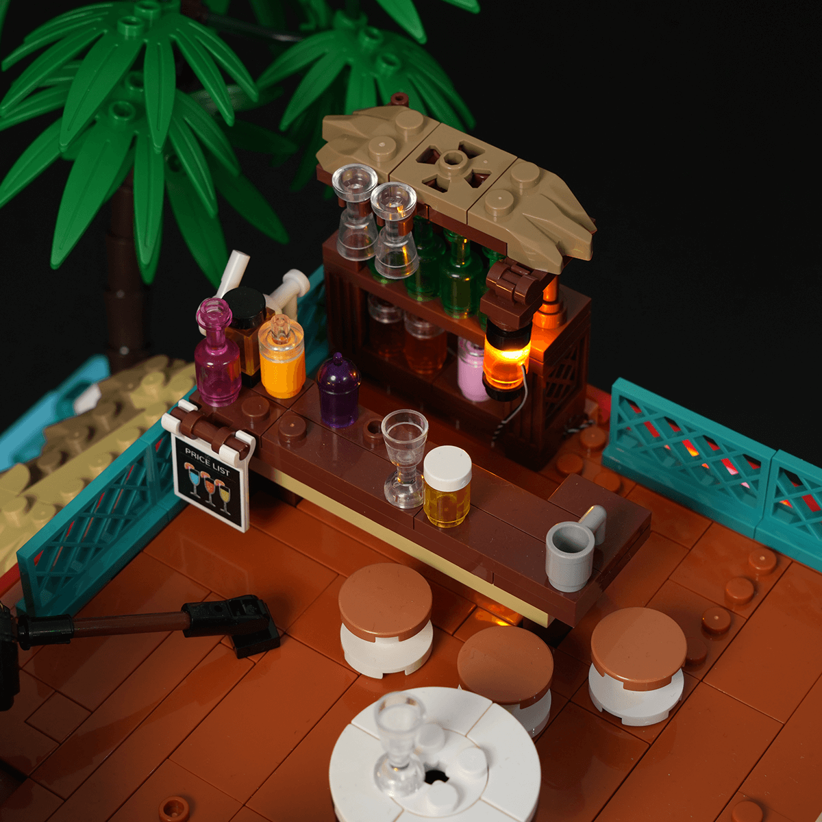 【Authentically Recreates Seaside Resort Life】Tropical architecture featuring vibrant colors and palm tree elements perfectly captures the essence of a beach surf shop.
