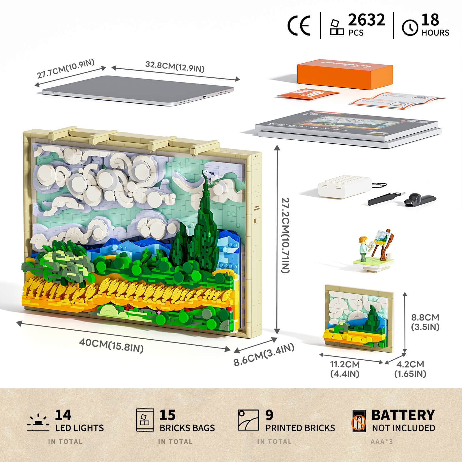 【Immersive Masterpiece Building Experience】Recreate iconic brushstrokes and vibrant colors with modular bricks, letting you experience the joy of painting with bricks while capturing the expressive style and bold contrasts of Post-Impressionism.