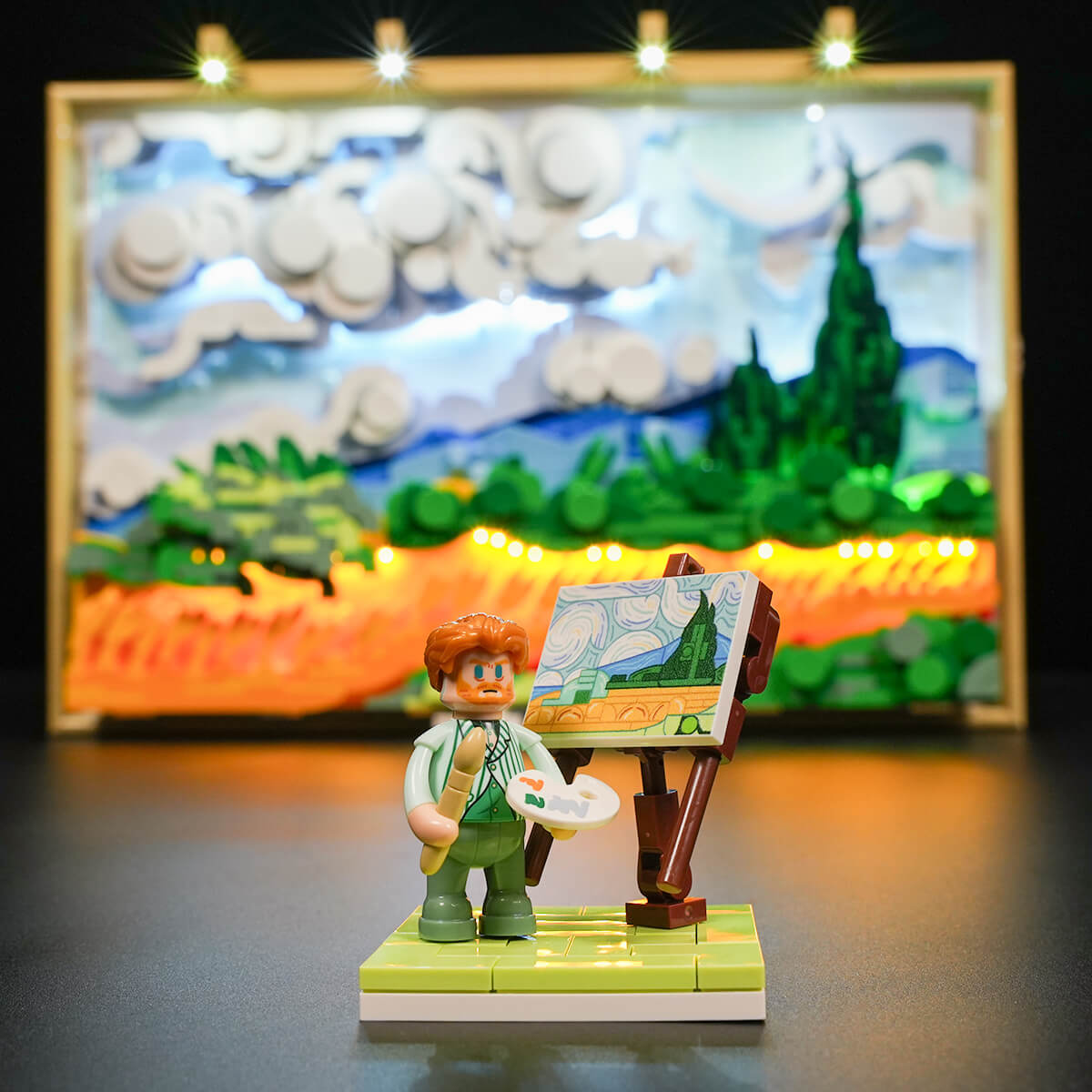 【Exclusive Collectibles & Hidden Artistic Details】Includes a Van Gogh minifigure and a postcard-sized brick display with a nameplate, perfect for collectors and art lovers. The figure is also cleverly integrated into the scene as a hidden Easter egg, adding interactive fun and creating a deeper emotional connection to the artwork.